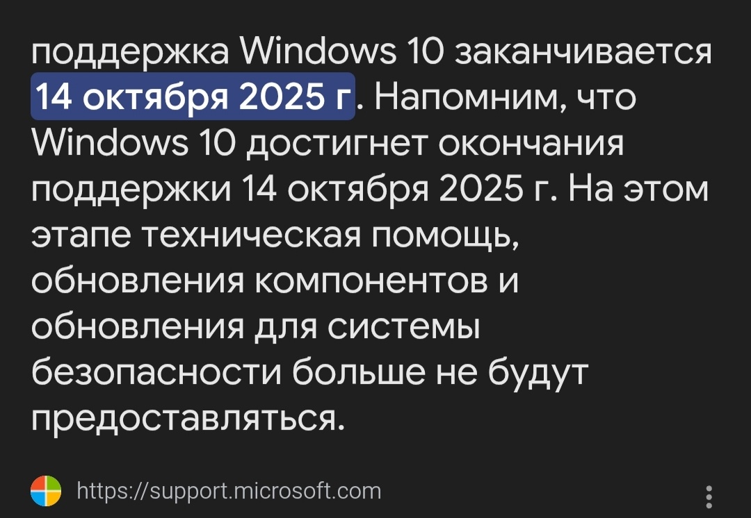 сегодня 14 октября 2025 года заканчивается поддержка windows 10.