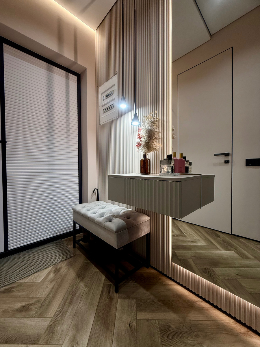 Знакомьтесь, это банкетка. Не просто банкетка, а Головная Боль, обтянутая тканью. А если точнее – неправильной тканью. Она стоила на маркетплейсе смешные деньги и была идеальна во всем и даже лучше, чем планировалось (на рендерах она была без ящика для хранения), кроме одного – цвета. Того самого, который в моем дизайн-проекте был обозначен как «гусиная лапка». Изначально, конечно, я хотела найти готовый вариант. С полной уверенностью, что многообразие ассортимента маркетплейсов даст мне это спокойно сделать. Но прикол был в этой злополучной расцветке! Как только появлялось в описание «гусиная лапка», ценник улетал в стратосферу и махал мне оттуда ручкой. Вот примеры: Шаг 1: Отрицание и торг Сначала я пыталась уговорить себя. «А может, этот серый цвет… динамичный? Он же подходит под мой всепоглощающий серо-беж !». Но нет. Он добавлял лишь боль моей душе перфекциониста. Он кричал на фоне моих стен, словно теща на футбольном матче. С ним что-то было не так. Пришлось признать: пер