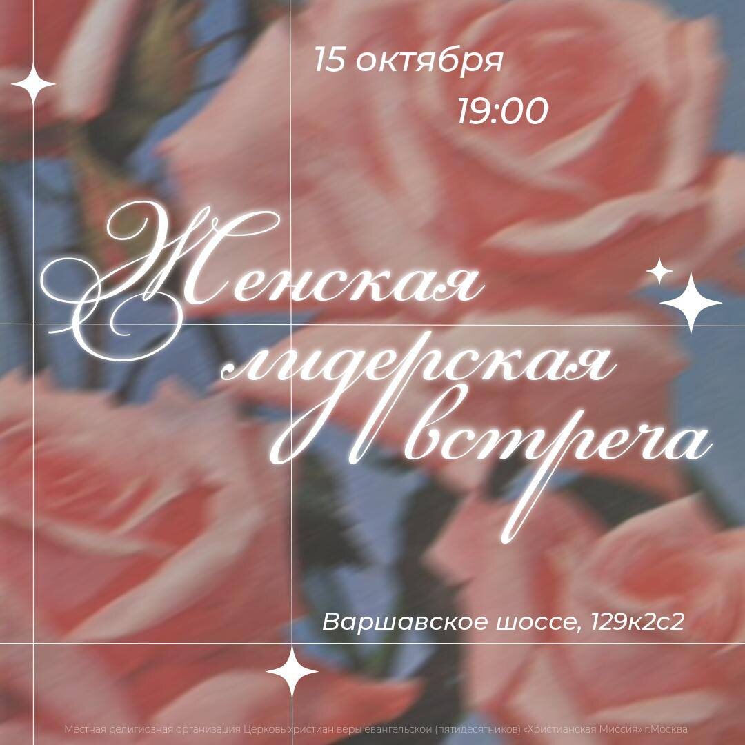 Дорогие сестры 💘 Напоминаем, что уже завтра состоится встреча всех лидеров домашних групп женской сети в офисе нашей церкви. 15 октября / 19:00 / Варшавское шоссе, 129к2с2, 5 этаж, офис 501 Верим, что это будет тёплое время живого общения, поддержки и Божьего вдохновения. До встречи 🙏