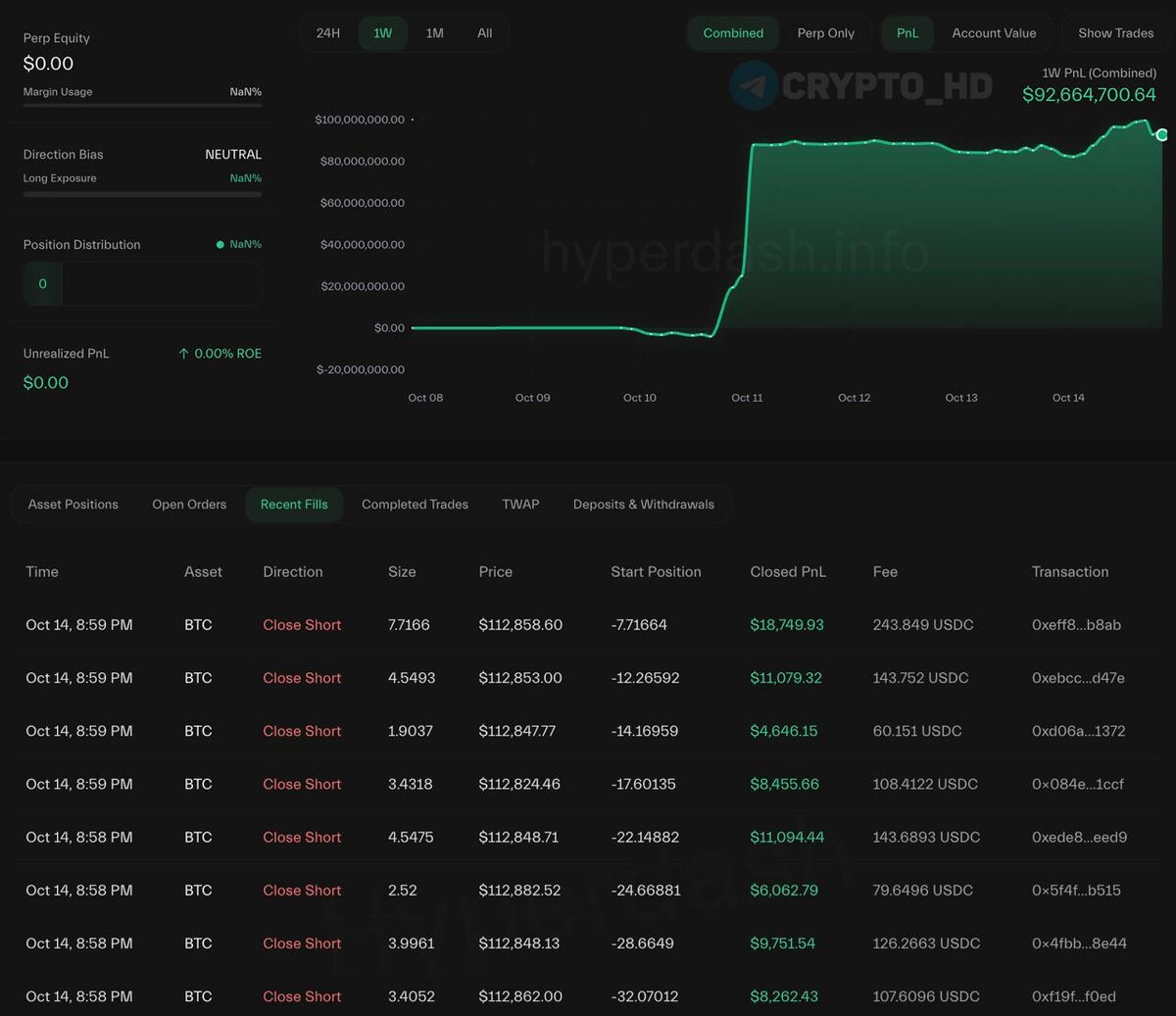 😳 Bitcoin OG полностью закрыл свой шорт по BTC с 10х плечом на $500,000,000, получив прибыль в размере $92,660,000