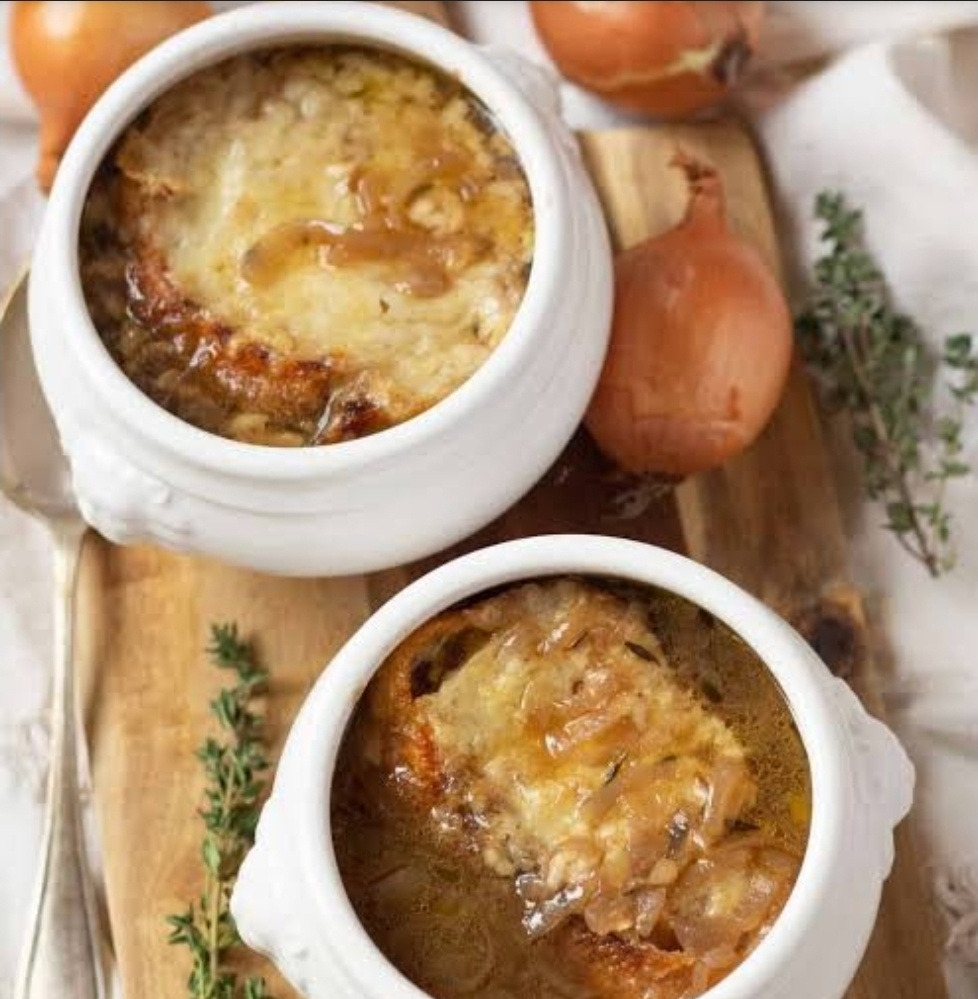 Французский луковый суп — это не просто первое блюдо. Это маленькая гастрономическая история Франции в одной миске 🍲. Ароматный, насыщенный, с золотистой сырной корочкой — он словно обнимает душу и возвращает в уютную атмосферу старинных французских домов. Если вы думали, что лук — скучный овощ, этот рецепт докажет обратное. Немного истории 🏰 Луковый суп появился во Франции еще в средние века. Первоначально он был едой бедняков: простой, недорогой, сытный. Но со временем блюдо приобрело статус классики французской кухни. Сегодня французский луковый суп подают в ресторанах Парижа и Лиона, украшая золотистой корочкой из сыра и подавая с хрустящими гренками 🥖. Секрет его вкуса кроется в медленном карамелизовании лука. Именно тогда овощ раскрывает свои естественные сладкие нотки, превращаясь в основу для настоящего гастрономического шедевра. Ингредиенты для классического рецепта 📝 Чтобы приготовить настоящий французский луковый суп, вам понадобятся: 5–6 крупных луковиц 🧅 50 г