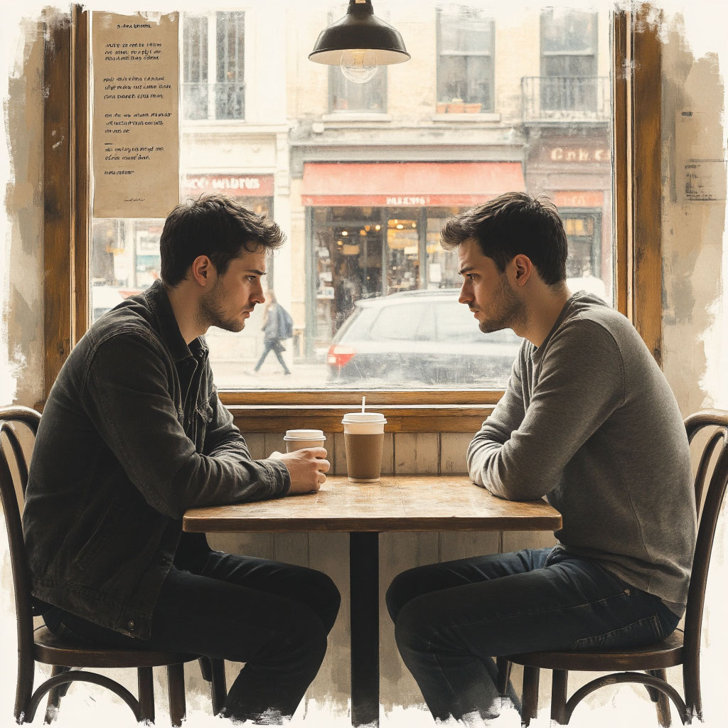 В кафе «У промокашки» почти не было людей. Я сидел с чашкой кофе, листал старый блокнот, когда напротив меня сел мужчина с лицом, на котором вечная тень неловкости. – Извините, – сказал он тихо, – вы мой свидетель. – Свидетель чего? – переспросил я, слегка улыбаясь. – Моей жизни, – ответил он. – Сегодня утром я посмотрел в зеркало… и меня там не оказалось. Я замер. Его слова звучали одновременно странно и печально — как будто мир мог просто забыть о человеке, если никто его не замечает. В этот момент в кафе вошла девушка с рыжими волосами, Анна. Она прошла через свет лампы, поставила на его столик два кусочка сахара и улыбнулась. Мужчина замер. – Она видит меня, – прошептал он. – И пока есть свидетели, я ещё существую. Он вдохнул, его контуры стали чётче. Я понял: быть свидетелем — это не просто наблюдать. Это давать другому право быть, существовать, даже когда мир кажется равнодушным. – Когда вы чувствуете себя невидимкой, – сказал он мне, вставая, – найдите того, кто одиноко пьёт к