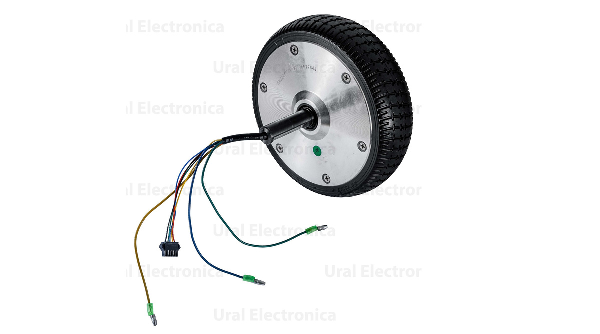 Мотор-колеса от гироскутеров - компактные, мощные, с регулировкой скорости без потери момента, раздобыть их легко и дешево. Но использовать для каких-то самоделок, где они не выполняют роль колес - неудобно... Впрочем, после простой доработки колеса становятся полноценными моторами с выходным валом. В мотор-колесе от гироскутера торчащий из него вал - это неподвижная часть, "статор". А ротором является сама "шайба" колеса - это неудобно. Для разных самоделок нужно, чтобы из мотора выходил какой-то цилиндрический вращающийся вал. К сожалению, сделать так, чтобы выходной "статор" стал полноценным валом, а корпус колеса - корпусом мотора - невозможно... Но можно на корпус смонтировать дополнительный вал, который будет вращаться хотя и вместе в корпусом, но это будет все же удобнее, чем ничего.. Для начала снимаем, разумеется, с колеса резиновую шину и выкидываем ее - она нам не понадобится. Отвинчиваем винты крышки корпуса со стороны оси и снимаем крышку. ...вынимаем за ось из корпуса