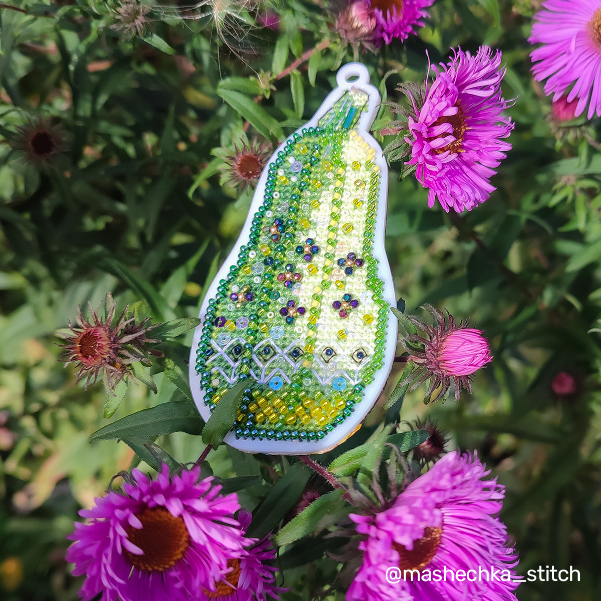 Для меня это прям символ года, куда ж без него Красавица-кукуруза. Пожалуй, на данный момент, это мой любимый овощ из всех вышитых. Смотрится потрясающе! Cеньор-помидор получился сеньорихой-помидорихой. Весь бисер взяла подбором, особо не сверяясь со схемой. Я ожидала, что он будет более красного цвета, а получился скорее лососевый какой-то. Как вам кукуруза, помидор и кабачок? Какой овощ нравится больше?