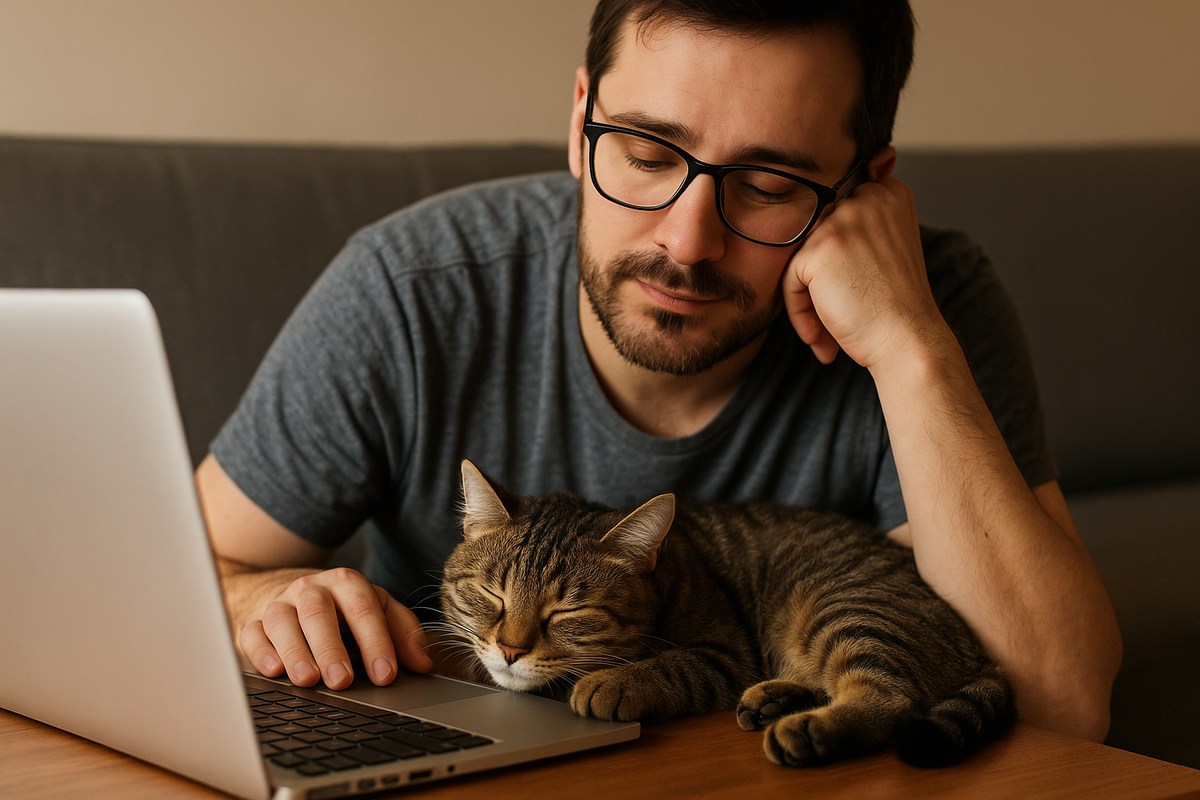 Кошка не знает, что вы человек, которому нужны углы под ноутбук и пространство для ног.