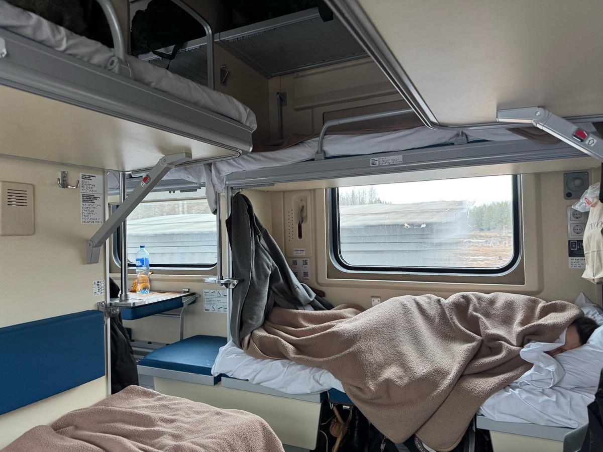 В этот раз я ехала в плацкарте, нижняя боковушка у столика. Я планировала провести время за чтением и работой, а также пообедать. У меня были термос с чаем, плед и папка с документами. Всё было удобно и привычно.