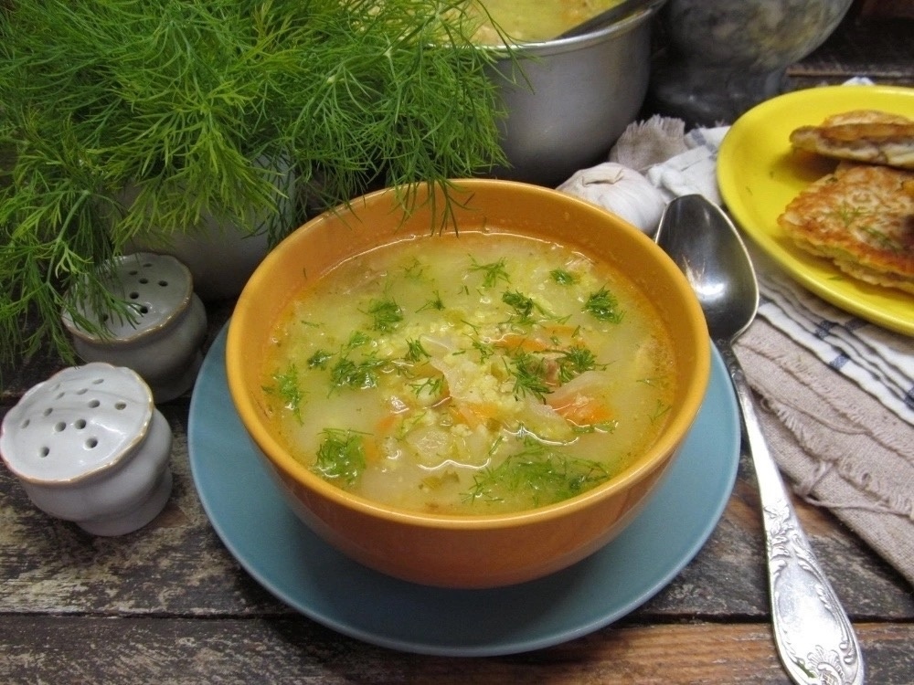 🍲 Ингредиенты: ▪️80 гр пшена ▪️50 гр лисичек. ▪️1 морковь. ▪️1 луковица. ▪️3 ст л растительного масла ▪️3 картофелины. ▪️1 лавровый лист. ▪️Соль, молотый черный перец по вкусу. ▪️1 пучок укропа ▪️Сметана для подачи Приготовление: 1️⃣Лук очистите, мелко порубите и пассеруйте в разогретом растительном масле 3 минуты. Добавьте натертую на крупной терке морковь. Готовьте еще 2 минуты. 2️⃣Вскипятите в кастрюле 2 л воды, посолите, добавьте лавровый лист и доведите до кипения. Всыпьте промытое пшено, добавьте нарезанные кусочками л
