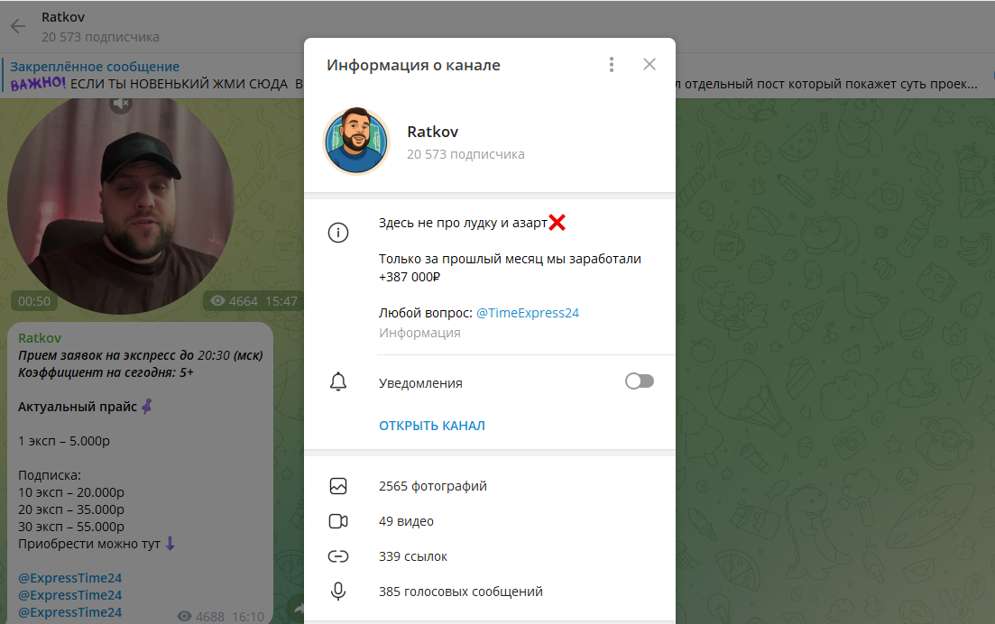 Мол, всё просто: платишь — выигрываешь. Но как показывает практика, за глянцем Ratkov скрывается самый обычный капперский скам, и таких каналов-клонов уже добрых два десятка.
