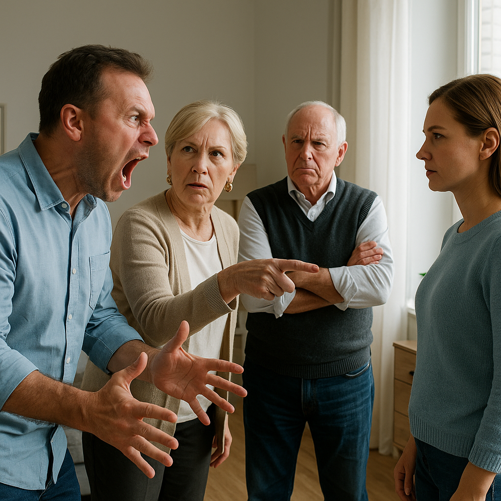 Мы стояли в гостиной моей — теперь уже бывшей — квартиры. За спиной Игоря маячили его родители: свекровь Раиса Петровна в своем вечном бежевом кардигане и золотых серьгах размером с грецкий орех, свекор Николай Степанович с красным лицом и складками на шее. Они приехали сегодня как на представление. Я для них всегда была представлением.