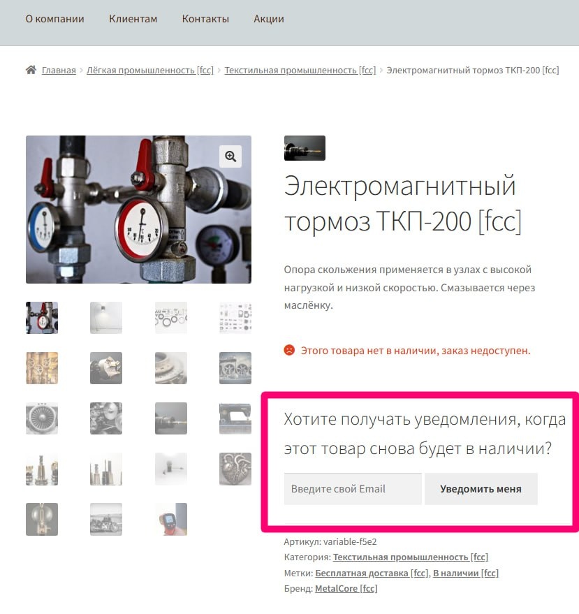 Занимаюсь тут версткой темы под WooCommerce и наткнулся случайно на функционал уведомлений о наличии товара.