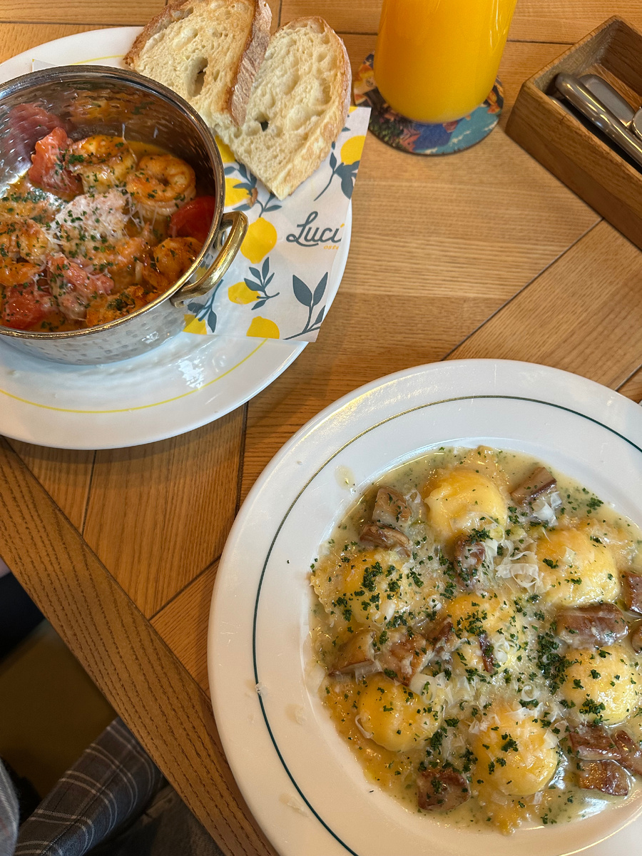 Наконец-то мы посетили нашумевший Osteria Lucia. Итальянский ресторан находится на втором этаже старинного особняка 1906 года, рядом с ТЦ «Аура» в Ярославле. Атмосфера здесь уютная и даже немного домашняя. В ресторане мы заметили большой выбор паст, поэтому решили попробовать равиоли с белыми грибами и маккерони с пастрами из индейки. Оба блюда реально вкусные, так что наша рекомендация! Из напитков мне понравился коктейль, а вот апельсиновый фреш оказался совсем пустым. Всего за ужин мы отдали 4,5 тысячи рублей. В целом место приятное, но я ожидала чуть больше ярких впечатлений — поэтому оценка, наверное, на 7 из 10. Если хотите уютно перекусить после прогулки по центру Ярославля и попробовать неплохую пасту, Osteria Lucia — вариант, который стоит учесть. 📍Ярославль, ул. Свободы, 42 А вы предпочитаете итальянскую кухню в поездках или чаще выбираете что-то местное?
