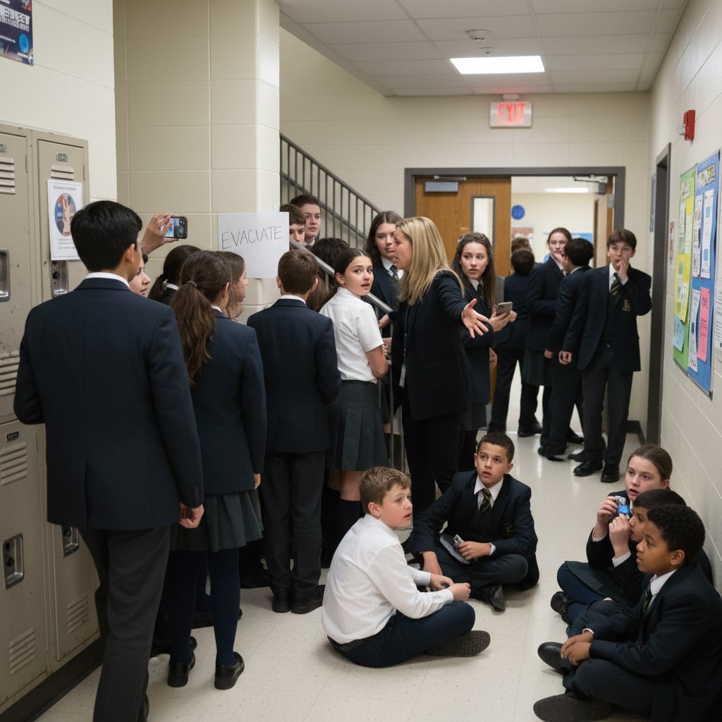 Напомните учащимся о том, что личные вещи нужно оставлять на месте, и что эвакуация должна проходить организованно, в колонне по двое, чтобы не допустить давки.