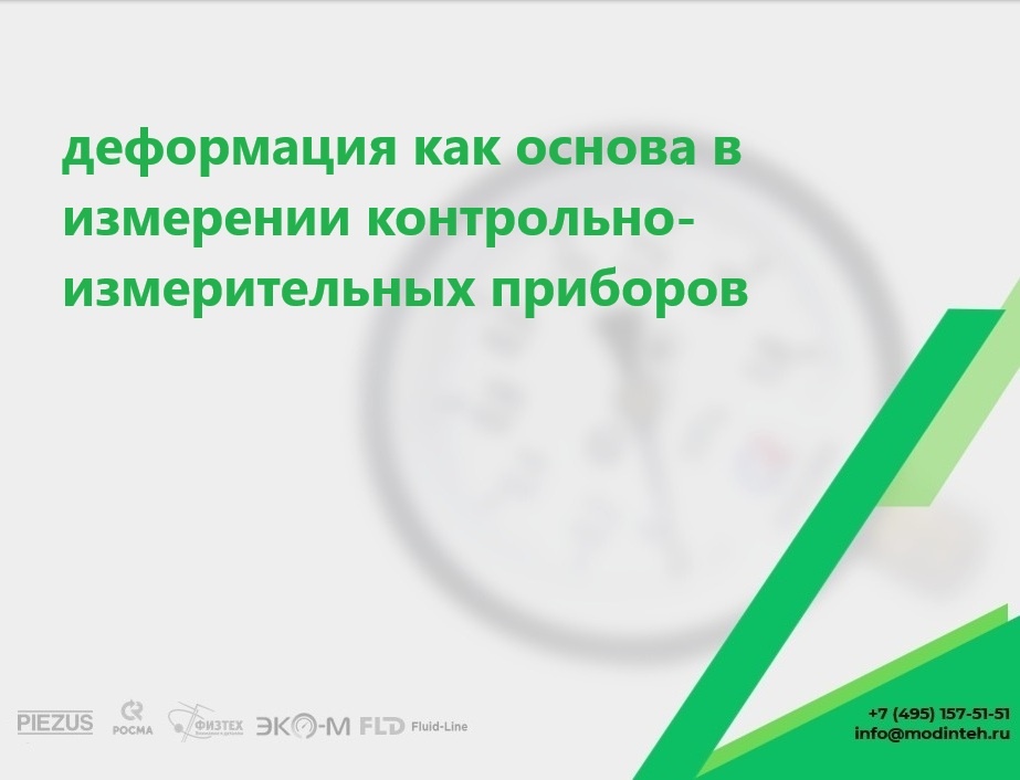 Что такое деформация в целом? Это изменение параметров формы и размера предмета (тела) под воздействием внешних факторов, в частности таких как давление и температура. Данное условие как раз заложено в принцип действия практически всех механических измерительных приборов давления и температуры и не только. В манометрах на основе измерения за счет деформации применяются несколько видов измерительных элементов в зависимости от требуемых условий измерения. Стандартно в качестве измерительного элемента применяется Трубка Бурдона, которая как раз рассчитана на средние диапазоны давления от 0,1 МПа до 6 МПа включительно. При требовании измерения более низких диапазонов давления применяют мембрану или мембранную коробку, особенностью данной конструкции является применение прибора только на газообразные рабочие среды. Для давлений свыше 6 МПа чувствительным (измерительным) элементом выступает многовитковая трубка, данный вид измерительного элемента применяют для оптимизации конструкции контрол