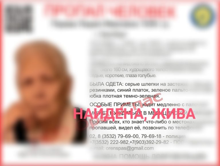 В Оренбурге полиция и волонтеры ищут 88-летнюю женщину, которая ушла из дома и не вернулась. Лидия Первак 1936 года рождения днем 14 октября покинула дом на улице Шевченко в Оренбурге. О ее местонахождении ничего не известно. На вид пропавшей около 90 лет, женщина славянской внешности, рост около 160 сантиметров, ходит с палочкой, худощавая, голубые глаза, короткие седые волосы. Была одета в зеленое пальто-толстовку, плотную темно-зеленую юбку, синий платок, обута в серые шлепки на застежке с белыми резинками. Всех, кому что-либо известно о пропавшей, просят сообщить в отдел полиции № 2 по телефонам: 8 (3532) 79-69-00, 79-69-18 или 102, +7(903)392-29-82 — ПСО «ОренСпас». фото: УМВД по Оренбургской области