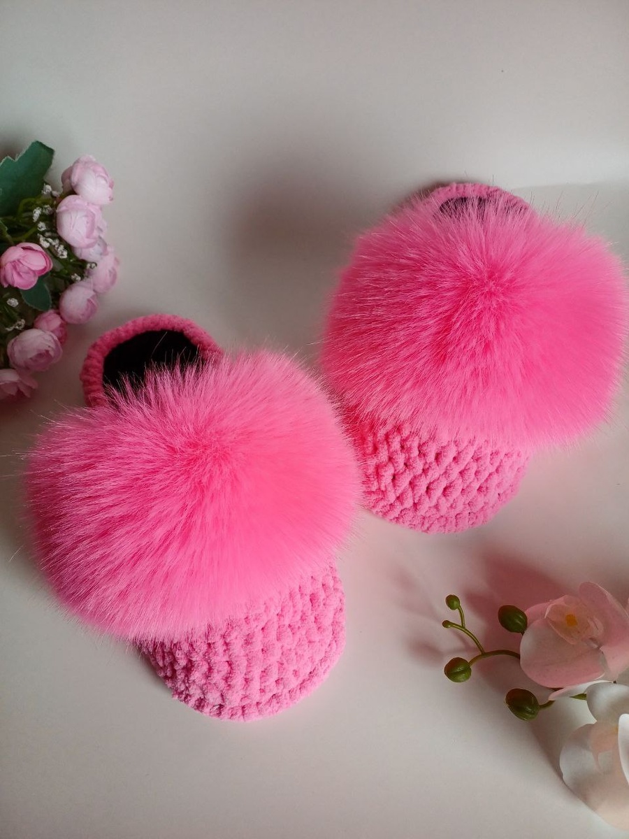 Плюшевые тапочки с меховой опушкой