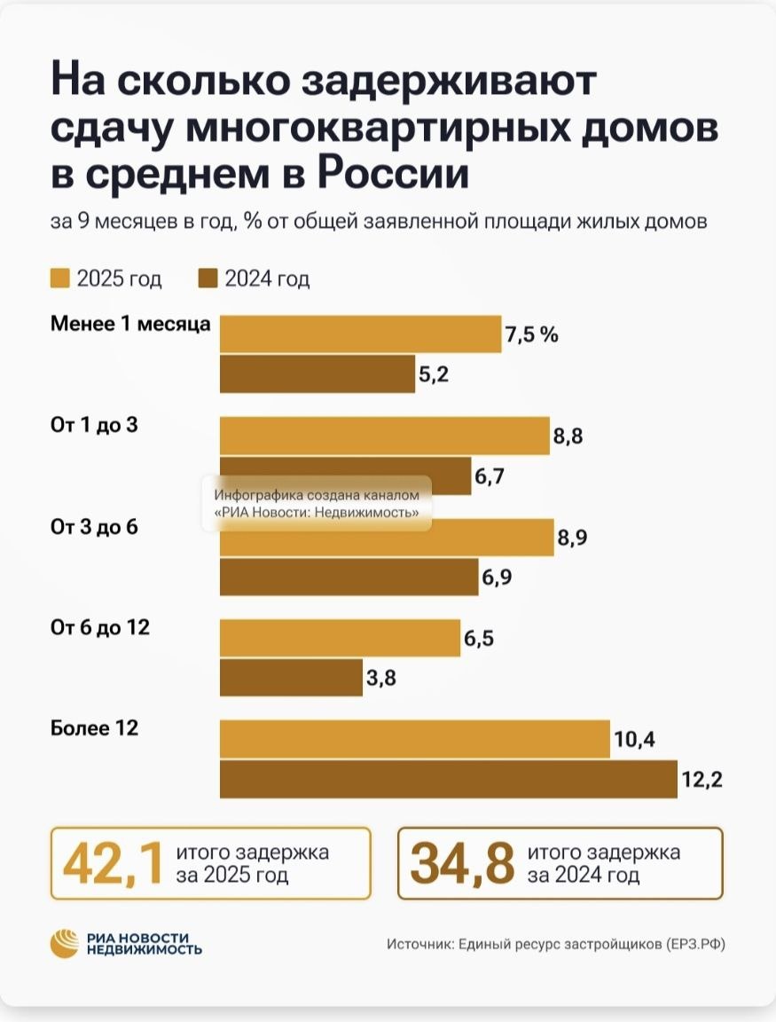 📎 Но для 10,4% сданного жилья опоздание составило больше года!