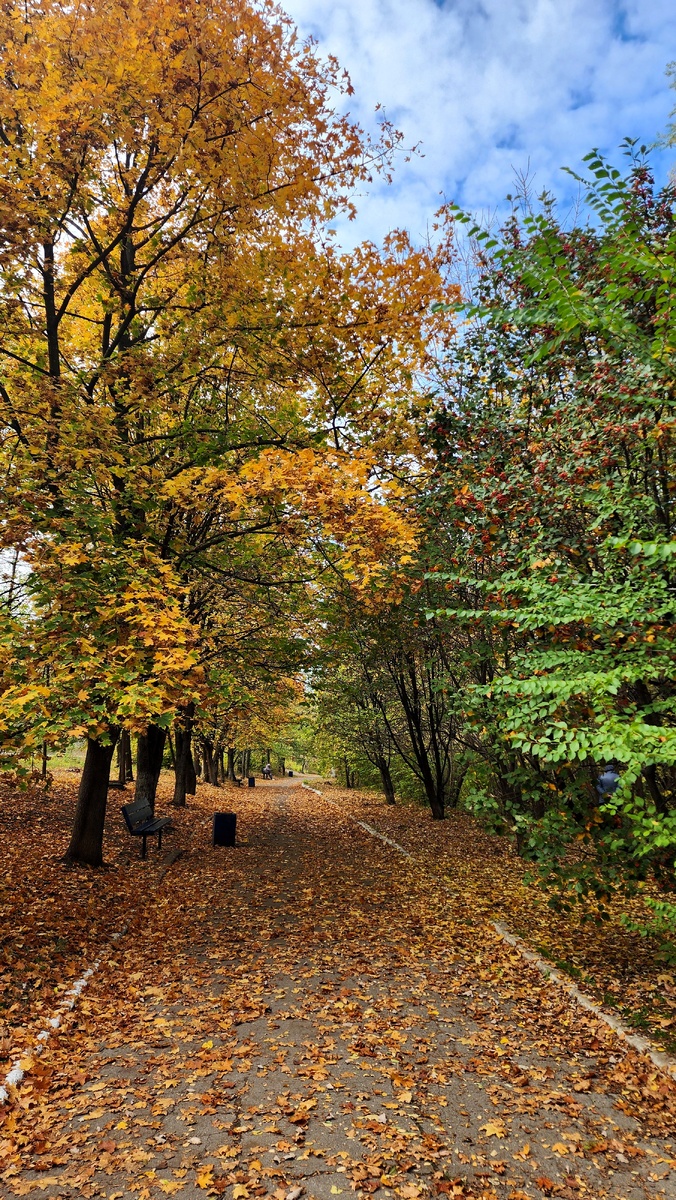 "У тебя коляска цвета осени" - заметила моя бывшая одноклассница, когда мы с ней поравнялись на тротуаре. А ведь и правда, только я этого не замечала. Я и сама, как осень, в своей оранжевой куртке, всё куда-то качу коляску по одним и тем же дорогам. И уже хочется сменить маршрут, но везде эти стаи собак, которые только прибывают. На днях случайно подслушала разговор в минимаркете. Одна женщина рассказывала другой, как на неё набросились собаки, которых она подкармливала, и теперь она обходит их стороной. "Больше ни косточки не дам" "Вы их сами в городе развели постоянно подкармливая, а теперь страшно по улицам ходить. И Вам тоже" - заметила другая женщина. Я так однажды гуляла с коляской, а за мной увязались собак 6-7. Все здоровые, как телята. Они меня не трогали, но было страшновато. В ДНР большое количество бездомных собак, которые хаотично размножаются, стали настоящей проблемой. Поэтому я всё так же продолжаю кататься по давно проторенным маршрутам. Обогнули с Мирой наше водо