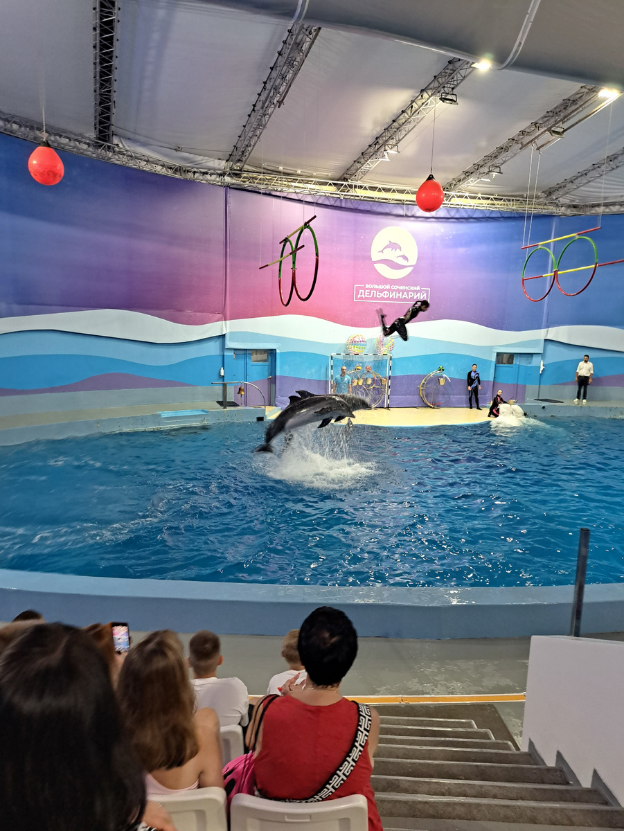 Представление было всего 1 час и весьма динамичное, дельфинарий советую, интересно, весело, и в самом центре Сочи)