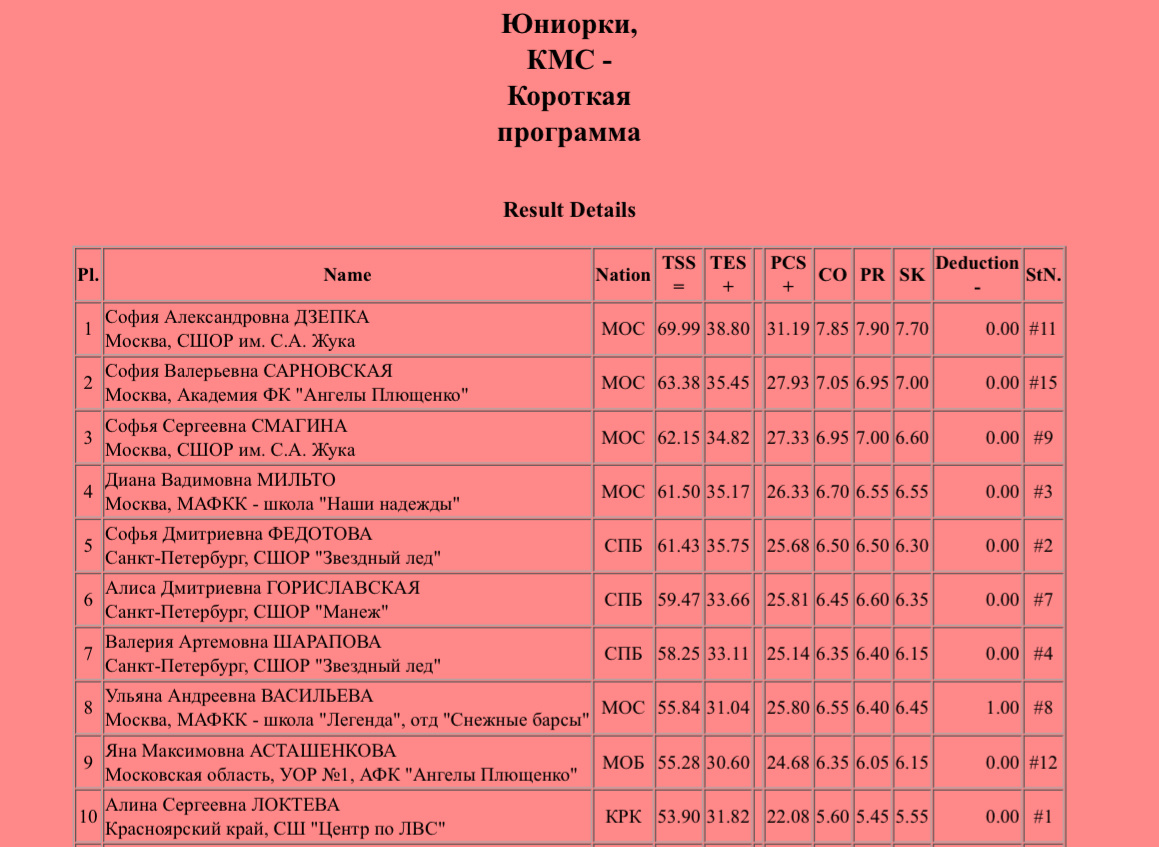 Этап Гран-при «Лед мечты». София Дзепка лидирует после короткой программы, Сарновская — вторая, Смагина — третья