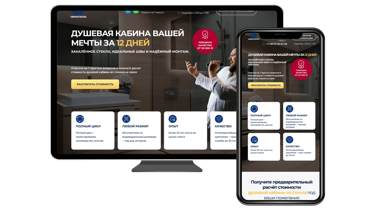 Запуск сайта для зеркальной мастерской оказался задачей, где особое внимание уделялось профессионализму, доверию и удобству клиента. Новый ресурс задумывался не только как витрина готовых проектов, но и как рабочий инструмент: он должен помогать оценить компетенции мастеров, рассчитать стоимость заказа и оформить заявку всего за несколько кликов. Главная идея заключалась в том, чтобы подчеркнуть уникальные технологии обработки стекла, показать качество исполнения и сформировать доверие у ключевой аудитории — дизайнеров интерьеров, мебельных фабрик, девелоперов и частных клиентов, ориентированных на индивидуальные решения. Старт работы начался с анализа конкурентов: Анализ показал, что рынок во многом опирается на типовые шаблоны. Чтобы выделиться, мы решили сделать ставку на премиальную подачу, удобные калькуляторы и современный минималистичный дизайн. Структура выстраивалась с учетом логики восприятия пользователя: Главная страница построена так, чтобы в первые секунды ответить на во