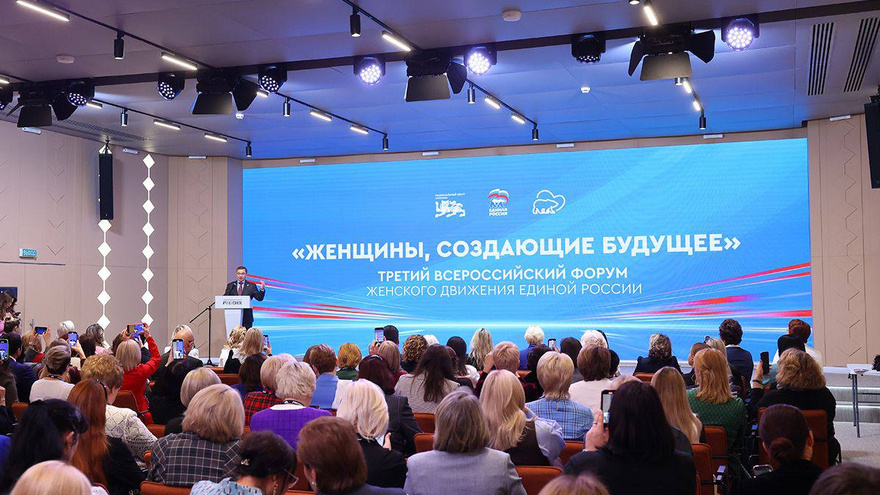 В Москве на площадке национального центра «Россия» состоялся третий всероссийский форум партийного проекта «Женское движение Единой России». Форум получил название «Женщины, создающие будущее». Он собрал более 700 участниц из 89 регионов страны: координаторов и активисток движения, депутатов, представителей общественных организаций и экспертов. Главными темами стали развитие женского лидерства, поддержка семейных ценностей, вовлечение женщин в высокотехнологичные отрасли, науку и предпринимательство, а также участие в формировании новой народной программы партии. Председатель «Единой России» Дмитрий Медведев отметил, что женщины составляют «уверенное большинство в партии». По его словам, две трети первичных отделений возглавляют женщины, и именно на них лежит значительная часть работы на местах. Также половина муниципальных депутатов – женщины. «Роль женщин в нашей партии огромна. Большая часть наших однопартийцев – это женщины. Хочу сердечно поблагодарить за все, что вы делаете для ст