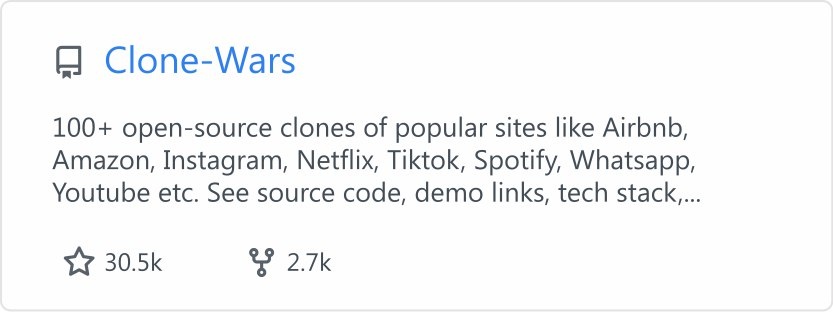 100+ Open Source Клонов Популярных Сайтов – Отличная Учебная База! 🚀 Если хочется прокачать навыки фронтенда и бекенда, рекомендую обратить внимание на проект Clone Wars. Здесь собраны более 100 открытых клонов и аналогов известных сервисов: Airbnb, Netflix, Instagram, TikTok, Spotify, WhatsApp и многих других. Каждый клонированный проект сопровождается исходными кодами, туториалами и даже демо, что делает его супер-полезным для изучения настоящих технологий на практике. Это своего рода кладезь идей и реального кода, где можно увидеть, как устроены популярные веб-приложения изнутри и применить это в своих проектах. Клонирование – отличный способ понять архитектуру, взаимодействие между фронтом и сервером и современные стеки технологий. Обязательно загляните – точно найдете что-то для себя! #opensource #программирование #учеба #клонирование #фронтенд #бекенд #github #проекты https://github.com/GorvGoyl/Clone-Wars https://vlad1kudelko.github.io