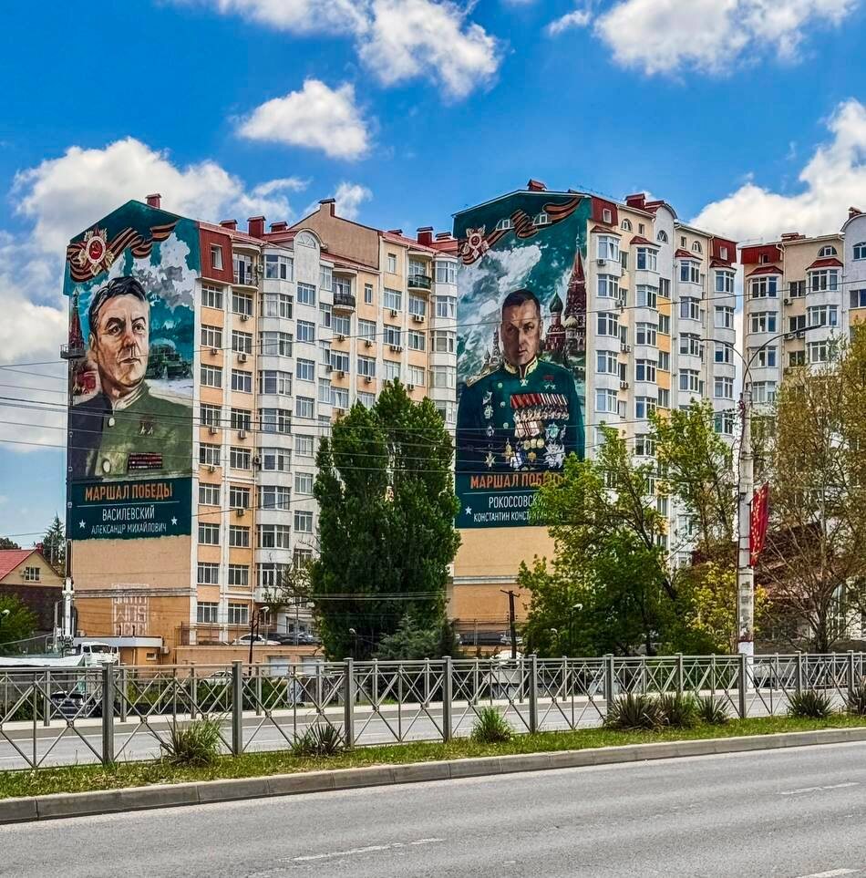 В Симферополе уже создано три мурала на фасадах многоквартирных домов с портретами Александра Василевского, Константина Рокоссовского и Георгия Жукова.