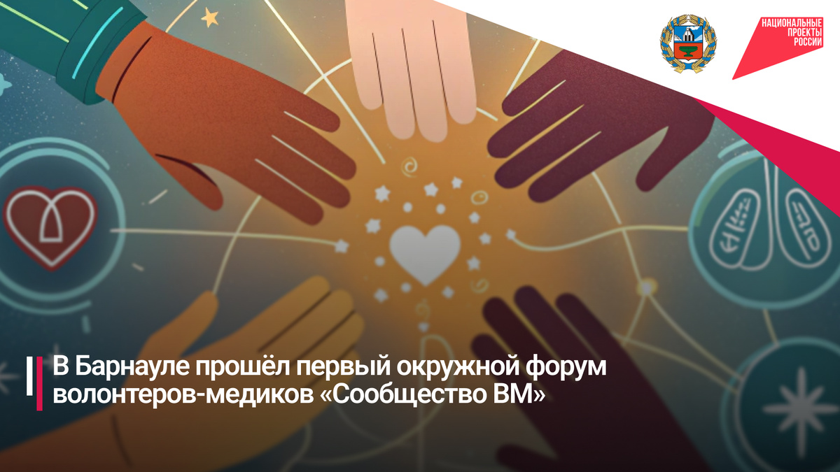 С 9 по 12 октября 2025 года в Барнауле впервые прошёл окружной форум волонтеров-медиков Сибирского, Дальневосточного и Уральского федеральных округов «Сообщество ВМ», направленный на активное вовлечение молодежи в добровольческую деятельность в сфере здравоохранения, развитие профессионального потенциала и наставничества, а также формирование кадрового резерва региона. Форум прошёл в рамках реализации программы комплексного развития молодежной политики в субъектах Российской Федерации «Регион для молодых» в рамках национального проекта «Молодежь и дети».
