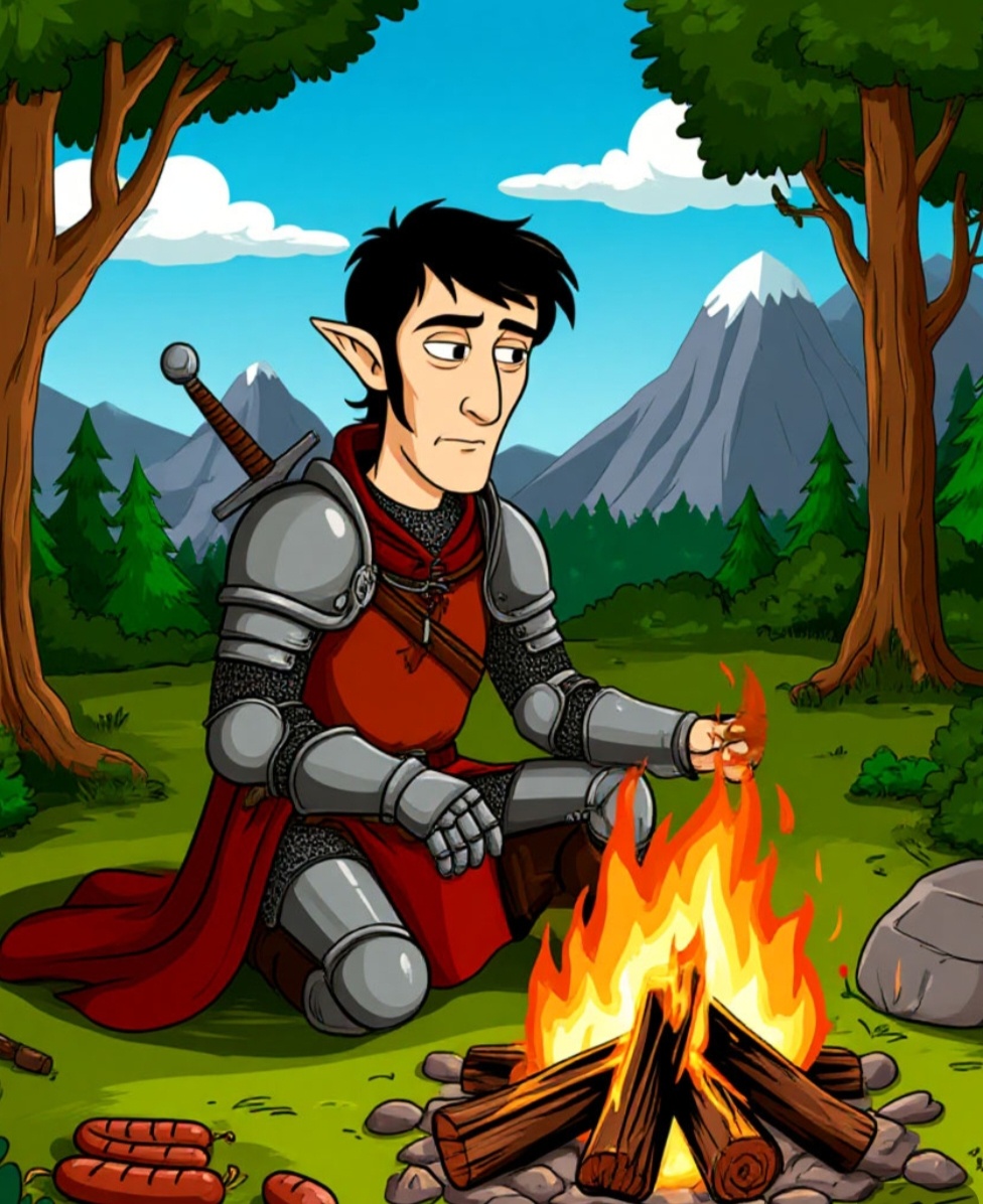 14 октября 1425 года.Вечер.Средневековая поляна.Разбит палаточный рыцарский лагерь. Около своей палатки с гербом в виде ушастой свиньи в гордом одиночестве сидит лорд Константэн Хрюкарт.Он жарит на костре колбаски,откушивает их и запивает элем. Его оставили сторожить лагерь,потому как он вывихнул левую пятку и не смог пойти в крестовый поход в соседнюю деревушку. Вдруг к нему прилетает почтовый голубь с письмом.От леди Чушильды Хрюкарт: -Ты огр ухастый,не забыл?У нас сегодня годовщина! Как поженились мы с тобой!Шестнадцать лет уже прошло,родили мы с тобой и дочь и мына! Надеюсь,ты подарок мне купил ? С брульянтами и золотом чего- то? Я жду,давай быстрее мне его пришли! А то когда еще вернешься ты со своего похода! - Какое длинное письмо,я ужарел читать!Как хочется в ответ мне голубя ей матного послать!Обманом на себе женила и шелухой от семечек меня приворожила!Давно бы надо на нее мне инквизиторам заяву накатать,глядишь тогда смогли ее бы ведьмою признать!Ждало ее б тогда аутадафе..