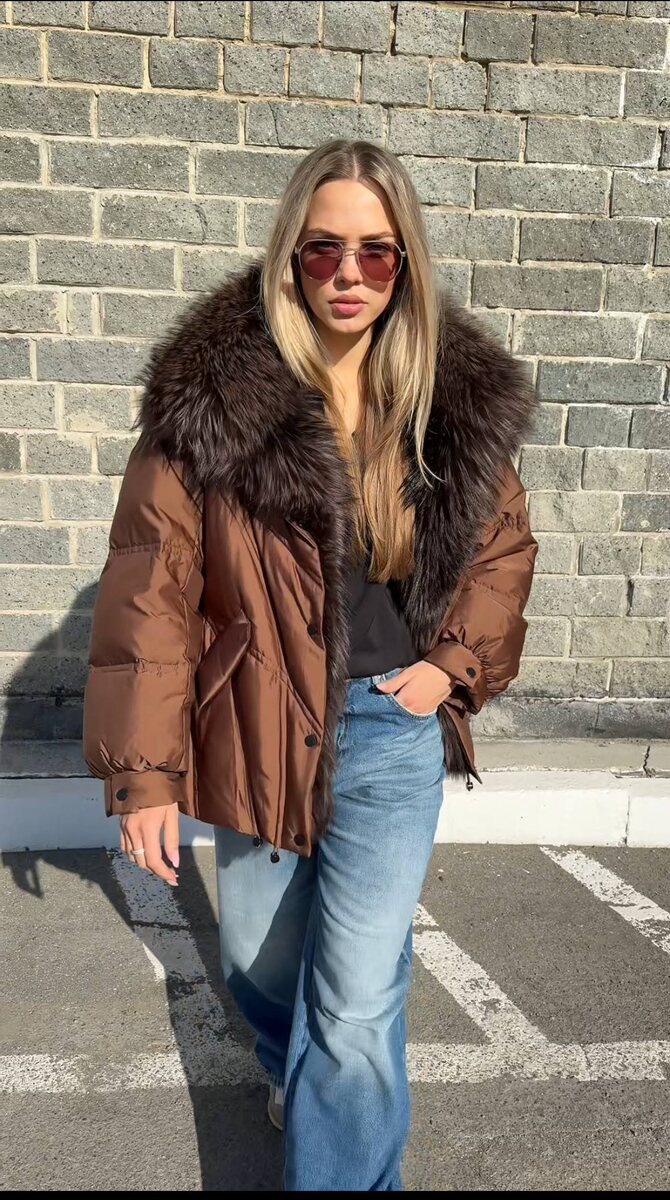 Куртка «Коньячный шёлк» с премиальным мехом разноворсовой фактуры