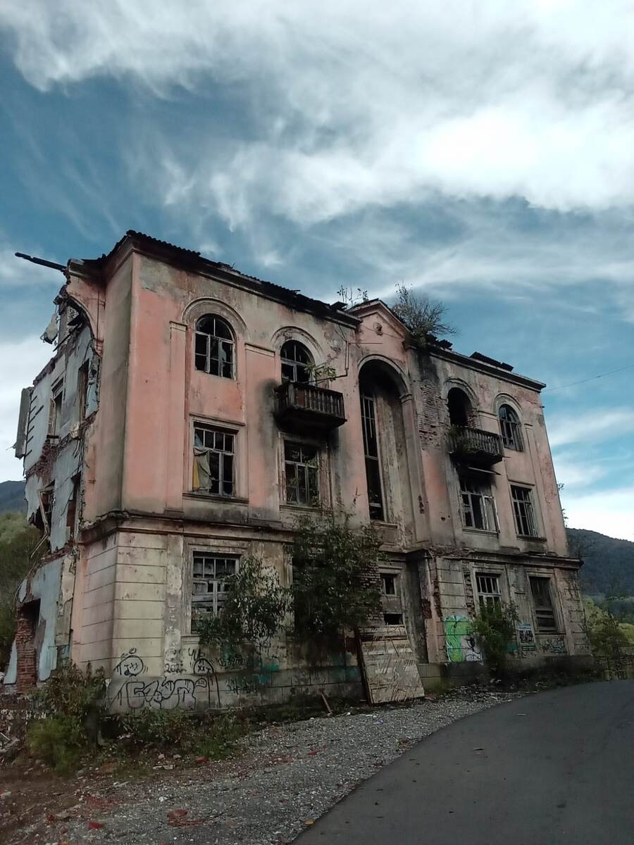 Взяли экскурсию на джипах в город- призрак Акармара, что в 2 часах езды от Афона. Стоимость 3000₽ с человека на весь день. Возят на комфортных джипах Тойота, куда помещается 7 туристов и водитель. Забрали прям от отеля и повезли. Дорога конечно сказочно красивая. Везде реки, реки, непролазные джунгли и вот он - город - призрак после 400 дней осады грузин. Как сказала моя подруга :"Грузины п*** расх****или, что Сталин настроил, абхазы теперь экскурсии водят😂😂😂 .....Богатый город был раньше" Прям не в бровь, а в глаз! Но как ни странно, жизнь-то всё таки в нём есть! По данным интернета, там проживает 25 семей сейчас, но по факту больше оказалось. Есть действующая школа, детский сад, здание мэрии, не считая кучи забегаловок, что для туристов понастроили. Есть свет и вода и куча животных на самовыпасе- ну правильно, кормиться-то как-то надо людям проживающим там. Только я не поняла, это возвращается народ туда или те, что остались с войны и не уехали? Поросю даже хлеба дали - н