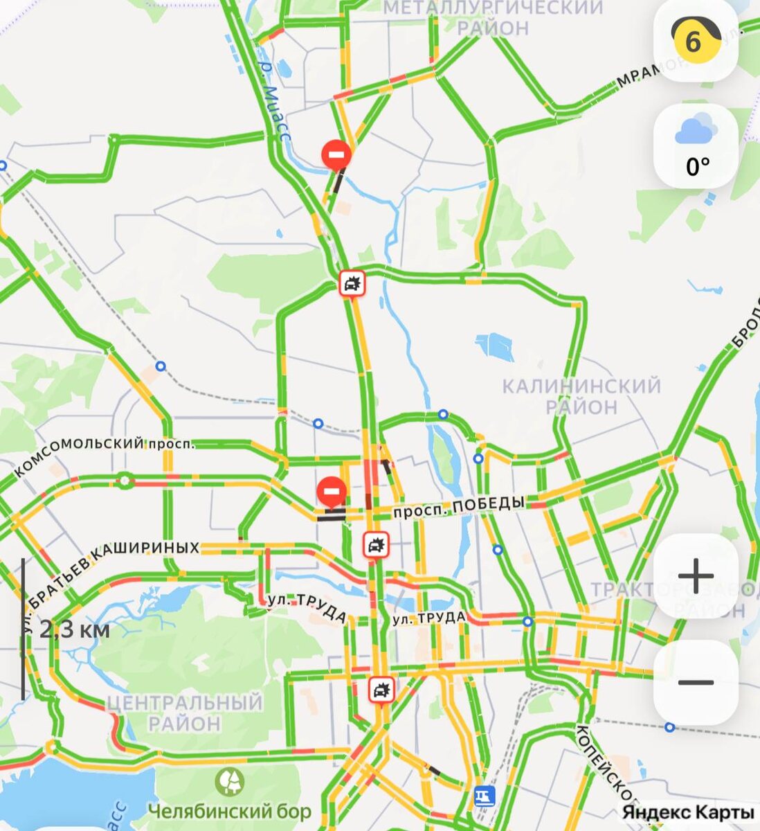 ❤️ Дорожная обстановка и прогноз погоды на сегодня в Челябинске 🚗 Пробки в городе 6 баллов. Движение затруднено на улицах Северо-Крымская, Братьев Кашириных, Университетская Набережная, Энгельса, Худякова, Блюхера, Воровского, Труда и Цвиллинга. ⛔️ Дороги перекрыты на улице Черкасская, Каслинская, Овчинникова и на проспекте Победы. Движение затруднено из-за ДТП на Свердловском тракте. ☁️ Температура воздуха +0°, облачно. #город@chelyabinsk_smi Поддержать Челябинск: проголосовать 👍 Подписаться | Прислать новость