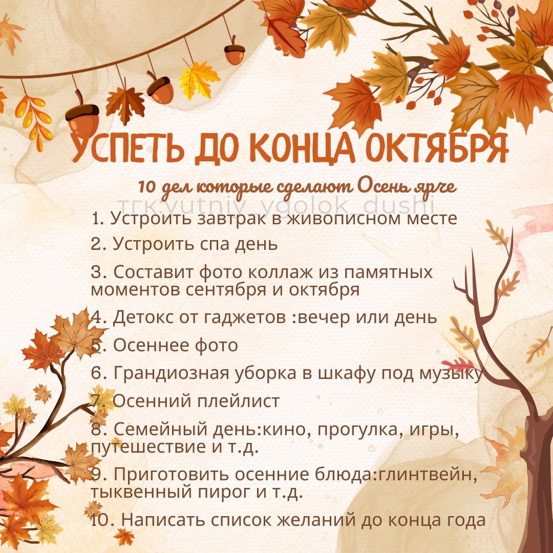 А вот красивой разноцветной осени осталось немного. Успейте насладиться этим временем. Ведь впереди нас ждет предновогодняя гонка 🚀 «как всё успеть и ничего не забыть»
