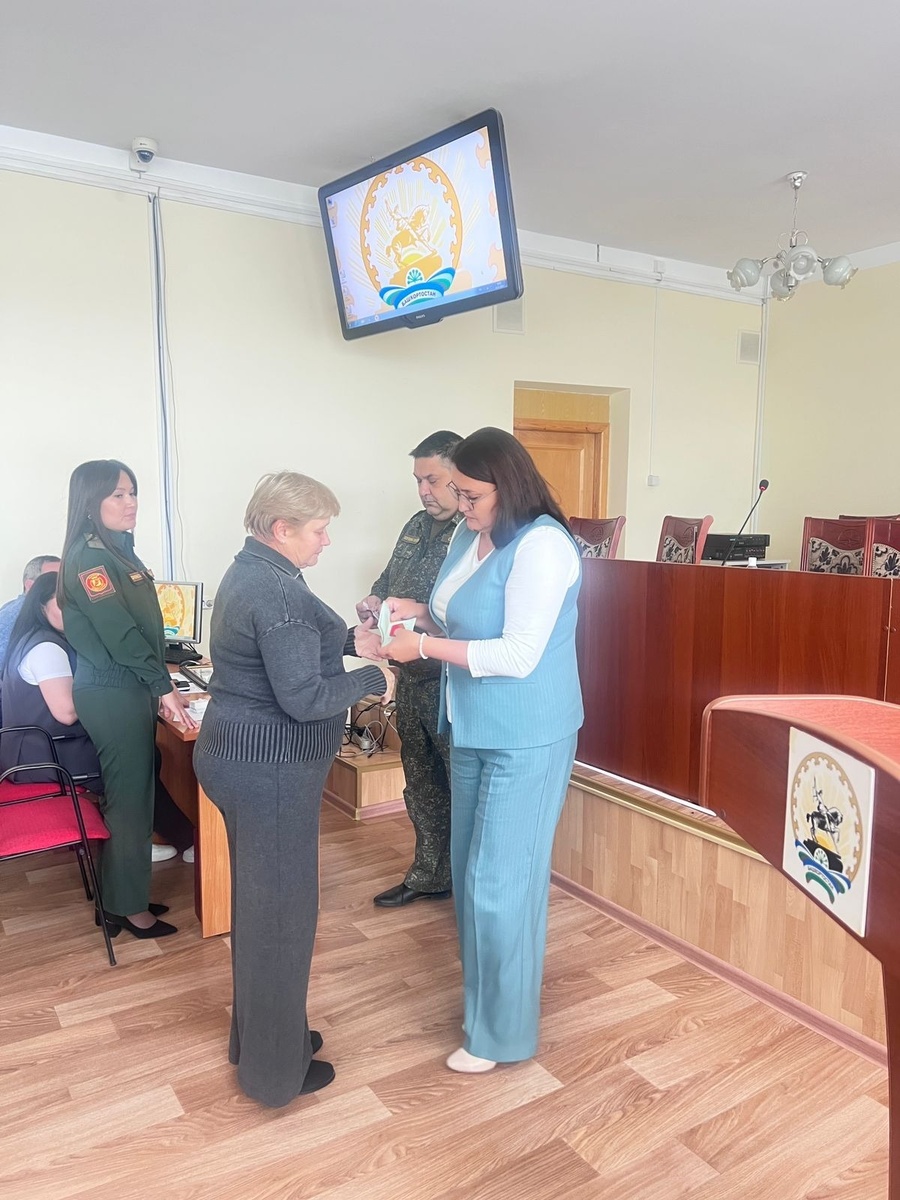 Сегодня, 14 октября, на оперативном совещании у главы администрации Ишимбайского района Республики Башкортостан состоялась торжественная церемония награждения участников специальной военной операции и членов их семей. Награды вручила исполняющая обязанности главы администрации района Айгуль Бикбулатова. За отвагу, самоотверженность и личное мужество, проявленные при защите Отечества, медалью «За отвагу» посмертно награждён Наиль Шамилевич Мусин — медаль вручена его матери Танзиле Фаукатовне Мусиной. Медалью «За отвагу» и медалью «Участнику специальной военной операции» посмертно награждён Ильмир Фаритович Алмакаев. Награды вручены его матери — Танзиле Нурулловне Алмакаевой. За мужество и отвагу, проявленные при выполнении боевых задач, медалью Жукова посмертно награждён Евгений Владимирович Слободин. Награду получила его мать — Татьяна Александровна Слободина. Медалью «Участнику специальной военной операции» награждён Василий Владимирович А. Айгуль Бикбулатова выразила благодарность ро