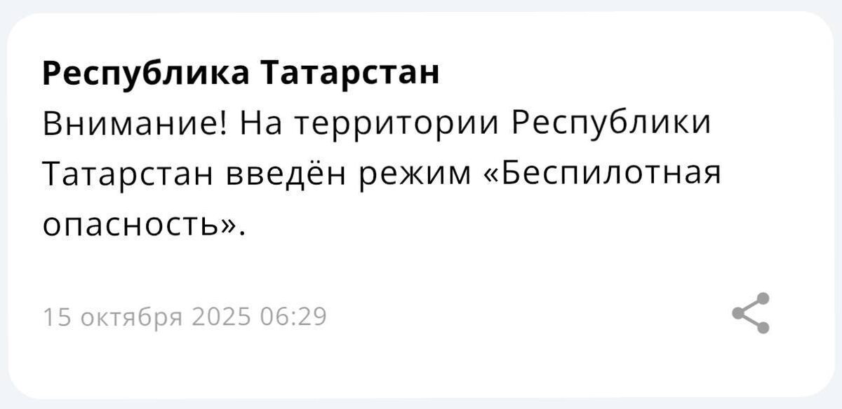 В 6:29 объявили режим беспилотная опасность! ⚡️ Также объявлена угроза атаки БПЛА на города Нижнекамск, Заинск, Набережные Челны, Альметьевск и Елабуга Жителей просят принять меры безопасности, спуститься в укрытие и не подходить к окнам. 😃 Подписывайся на most| Набережные Челны | Пришли свою новость