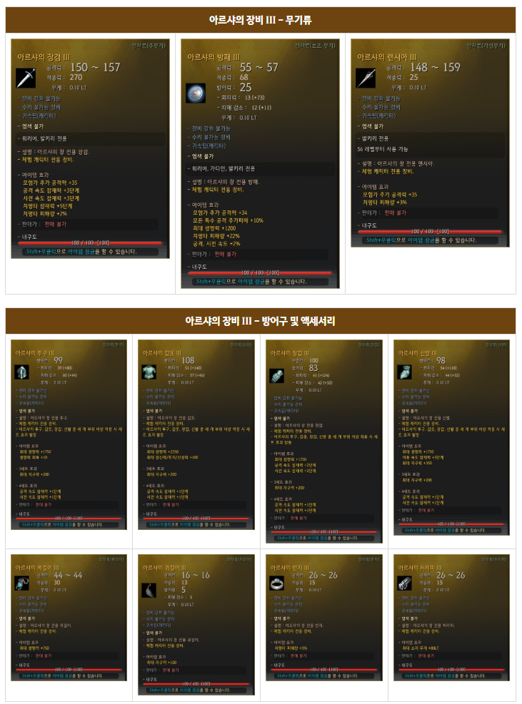 Снаряжение Арши III можно получить следующим образом: