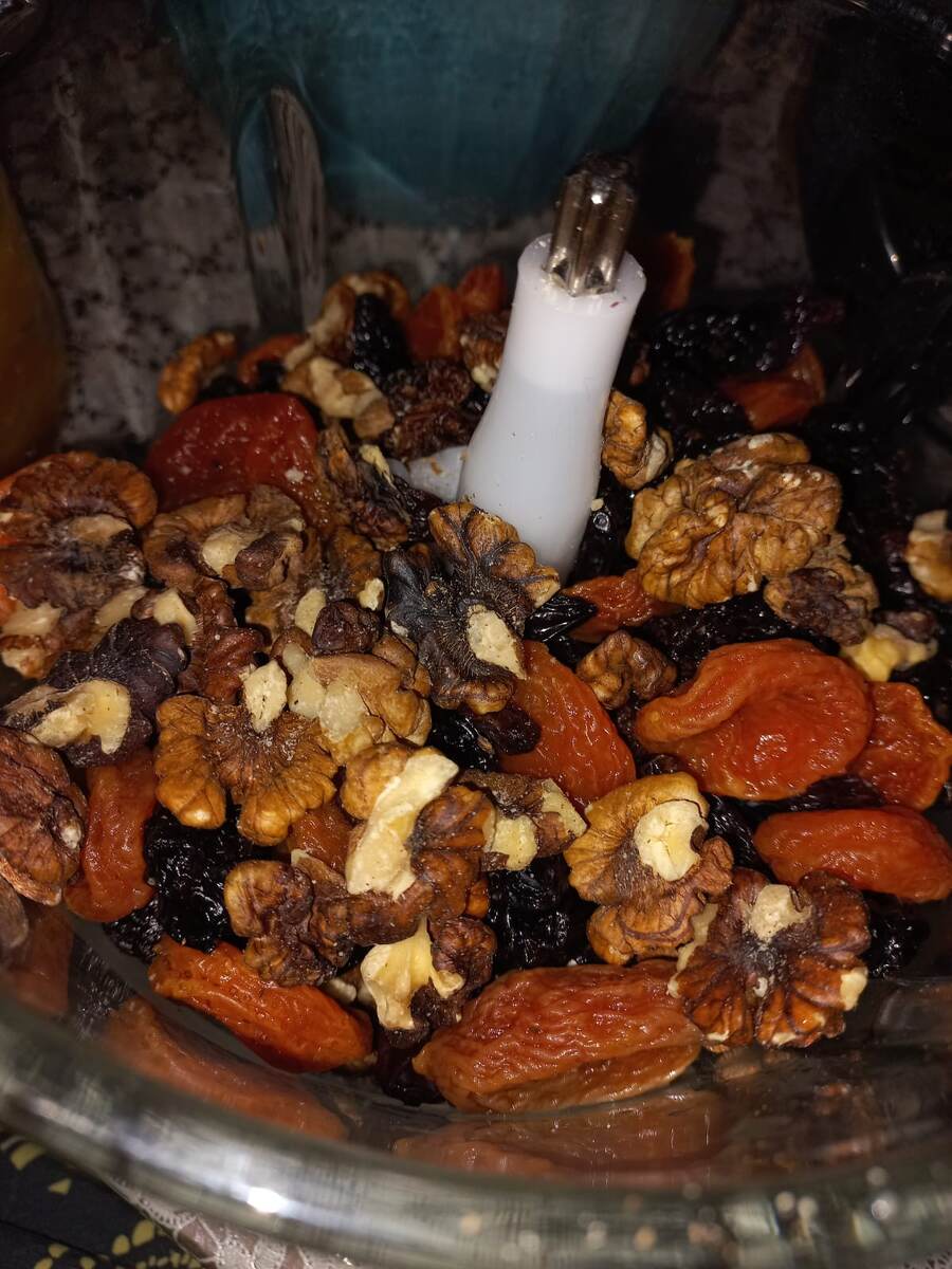 Всё ингредиенты хорошо промыла, и посушила, и потом измельчила вместе с мёдом желтеньким.