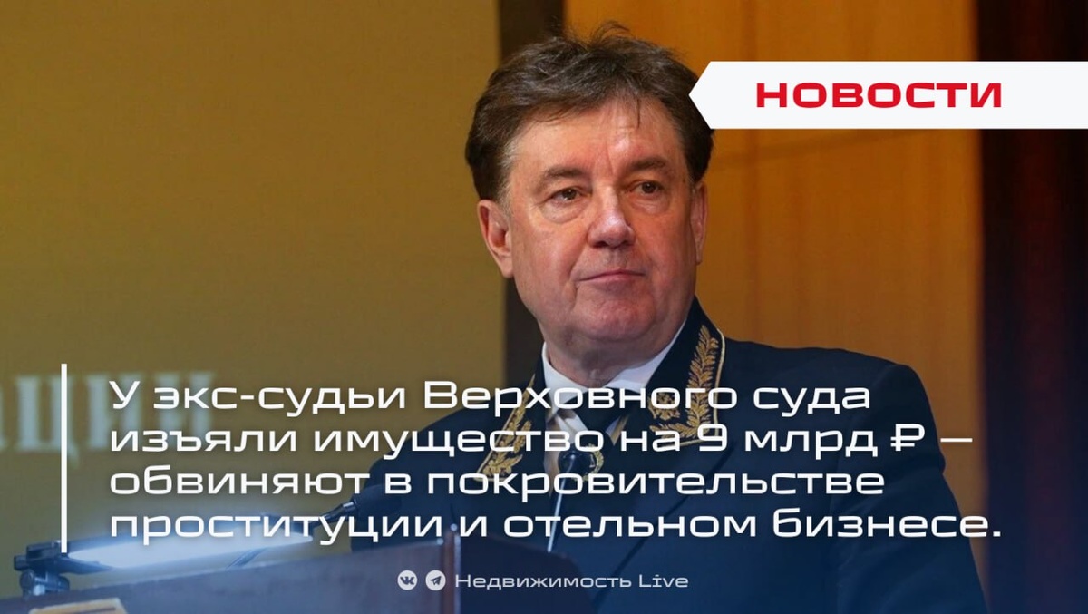 🚨 У экс-судьи Верховного суда изъяли имущество на 9 млрд ₽ — обвиняют в покровительстве проституции и отельном бизнесе