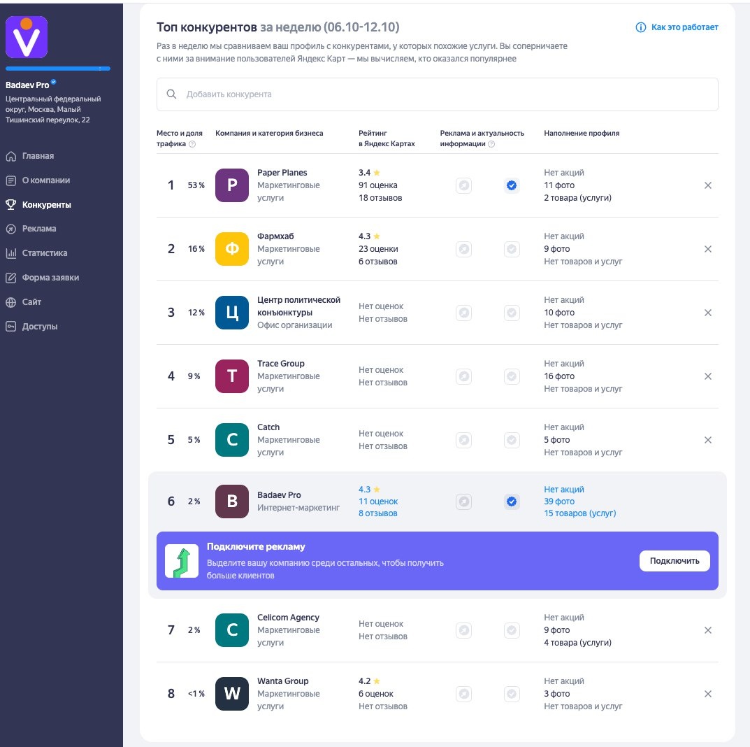 Как формируется раздел "Конкуренты" 🏆 в Яндекс Бизнес