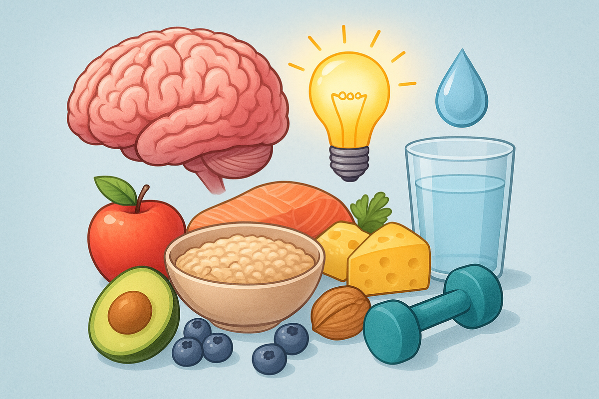 Каждый хочет делать больше за меньшее время. Но продуктивность — это не воля, а биохимия. Научно доказано, что наш мозг работает на пределе, только когда тело получает правильное топливо. ⚙️ 1. Энергия начинается не с кофе, а с глюкозы Мозг потребляет около 20% всей энергии организма, и его главный источник — медленные углеводы. 🫐 Что помогает: • овсянка, гречка, киноа; • фрукты с низким гликемическим индексом (яблоки, ягоды); • тёмный шоколад (70%+ какао). Кофе и энергетики дают всплеск, но потом — резкое падение концентрации. Лучше заменить их зелёным чаем или матча — они содержат L-теанин, который повышает внимание без тревожности. 🧬 2. Белок = фокус и выносливость Белок расщепляется на аминокислоты, из которых строятся нейромедиаторы — вещества, отвечающие за мотивацию и настроение. 🥚 Лучшие источники: яйца, рыба, творог, орехи, бобовые. Особенно важны тирозин и триптофан — они участвуют в синтезе дофамина и серотонина, гормонов удовольствия и концентрации. 💧 3. Вода