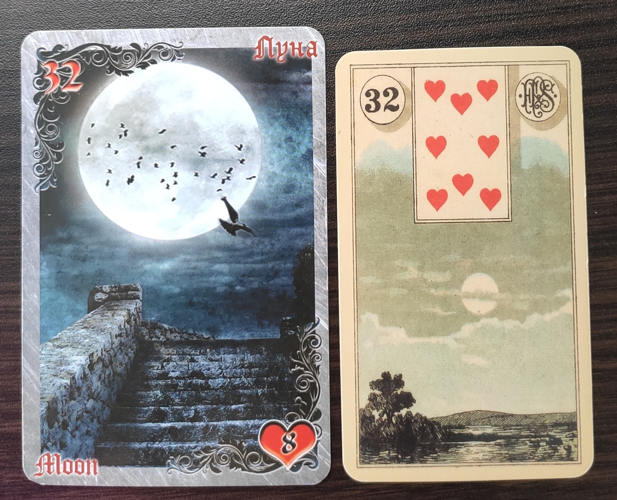 🧿карта ЛУНА 👁️ТАЙНА СТАРОГО ЗАМКА колода Ленорман 📌Я буду рассматривать карту и описывать её через собственное восприятие ✍️По желанию присоединяйтесь к описанию карты. 📝Возможно Вы увидите🔎что-то другое... _______ Карта Луна изображена полная. Она огромных размеров, что создаёт впечатление, что светит Солнце. Яркость освещения, как при дневном свете, поэтому речь пойдёт не о иллюзии, а полноте виденья. При таком освещении в ночное время всё довольно хорошо видно. И то, что ранее страшила, сейчас выглядит обсолютно иначе. Полнолуние очень мощное явление Луны, что даёт в этот период невероятную энергию увидеть то, что было скрыто. Считается, что в это время усиливаются эмоции, что может приводить как к приливу сил, так и к эмоциональному накалу. Полнолуние - это период максимальной лунной энергии, которая может быть использована для исполнения желаний, зарядки амулетов, талисманов, а также для работы с подсознанием и снами. Поэтому Полнолуние - это время ритуалов. Луна это вс