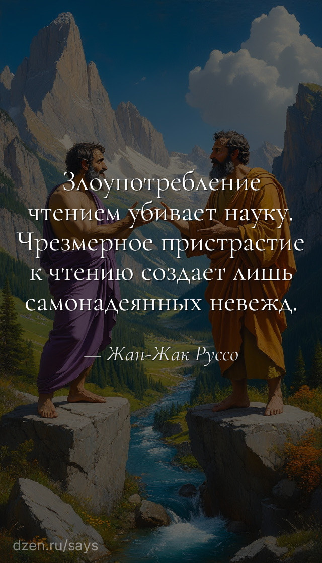 «Злоупотребление чтением убивает науку. Чрезмерное пристрастие к чтению создает лишь самонадеянных невежд.» — Жан-Жак Руссо Сидев в углу шумного литературного салона, я наблюдал, как молодой энциклопедист, с апломбом цитирующий Вольтера и Дидро, пытался рассуждать о сельском хозяйстве. Его речь пестрела заученными фразами, но когда крестьянин робко задал практический вопрос, наш «учёный» растерялся. В этом мгновении мне открылась горькая истина: Париж наводнили люди, горделиво называющие себя философами, чьи головы набиты чужими мыслями как тюки сена. Они перестали видеть мир, заменив подлинное познание механическим накоплением книжных цитат. Помню, как сам когда-то верил, что чтение сотворит из меня мудреца, пока не осознал страшную подмену: книги стали для меня шорами, а не окном в мир. Именно тогда во мне вызрело убеждение, что наука гибнет не от невежества, а от ложной учёности — когда человек, проглотивший библиотеку, мнит себя гением, утратив способность к сомнению и живому иссле