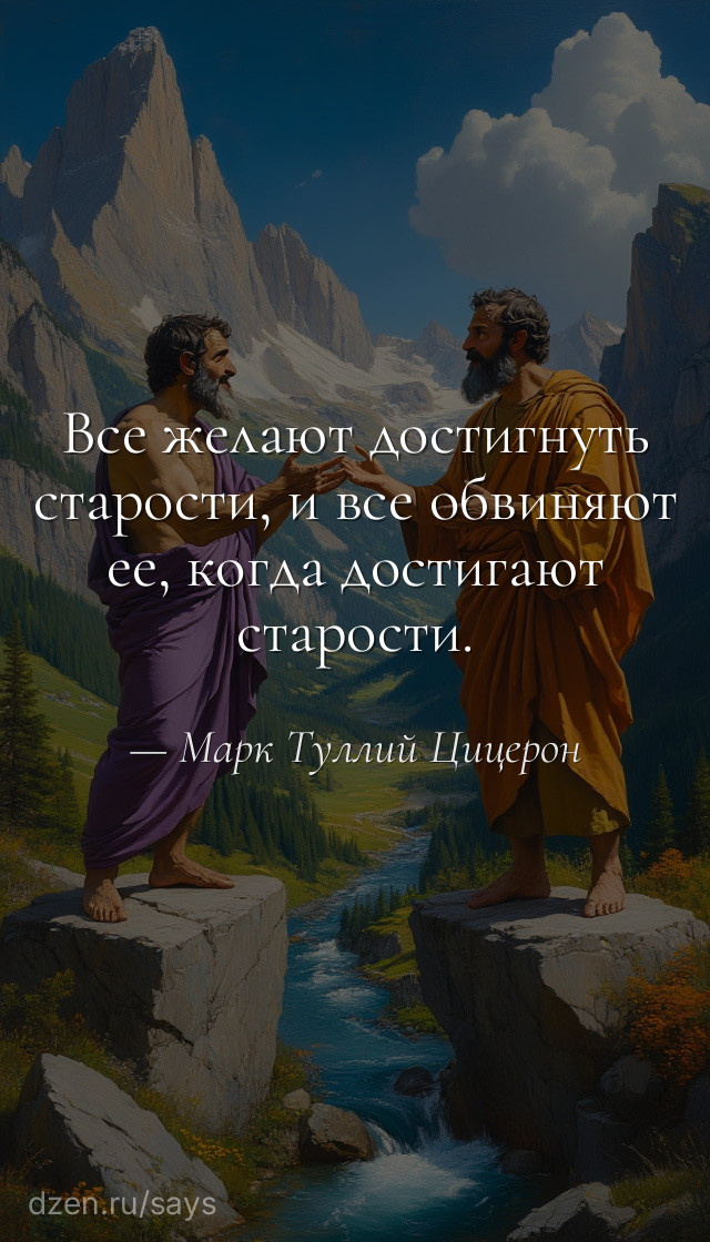 «Все желают достигнуть старости, и все обвиняют ее, когда достигают старости.» — Марк Туллий Цицерон Я размышлял под шум воды на римском форуме, наблюдая группу старейшин, жалующихся на подагру и тусклое зрение. Рядом юный воин мечтал о седине как символе мудрости. Этот контраст пронзил меня словно копье: люди драматичней всего гонятся за тем, что позже ненавидят. Мы боремся за долгие годы, но когда тело начинает предавать, проклинаем накопленные морщины. В этом трагедия человечества — желать того, чью сущность понимаем лишь при встрече. Я внезапно осознал корень конфликта: старость лишь обнажает наши иллюзии полнокровной жизни. Затем ко мне подошел Сенека. Услышав моё наблюдение, он мрачно рассмеялся: «Скажи им, что настоящая вина не в годах, а в упущенной юности души». Но я не согласился. Главная мудрость в том, чтобы принять эту двойственность — честно назвать боли увядания, но и увидеть в прожитых годах тихую победу. Наше будущее «я» всегда непредставимо, пока не станет настоящим.