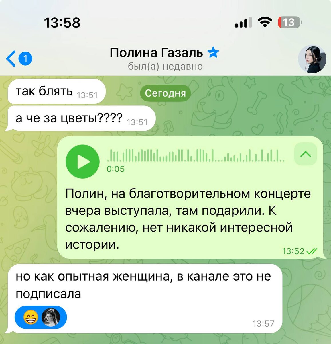 По просьбе Полины Газаль пишу: этот букет с благотворительного концерта, не от мужчины!