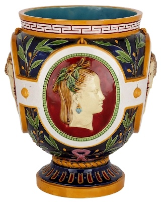 Именно для жардиньерок и кашпо из майолики было создано больше орнаментов, чем для любых других форм майолики. Здесь дизайнеры Минтон давали волю своей фантазии: