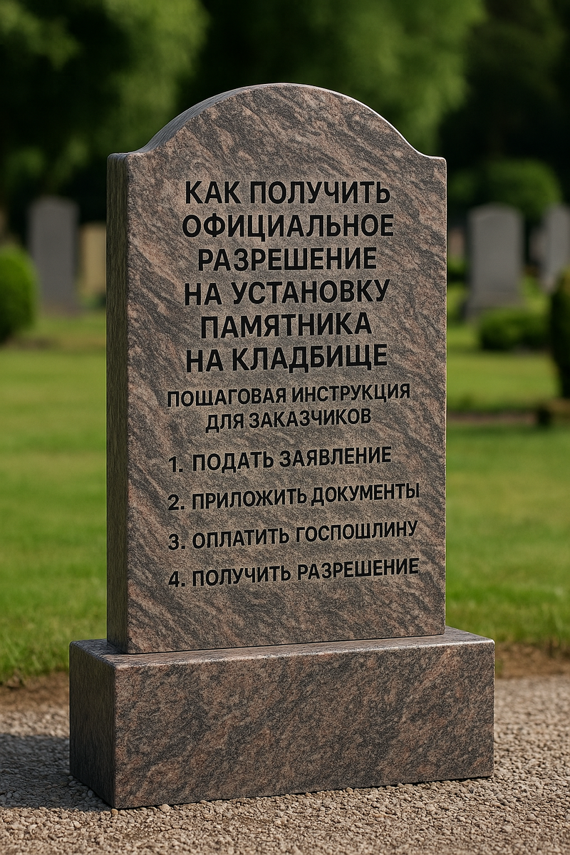 #памятник #установкапамятника #кладбище #документы #мемориал Установка памятника на кладбище — важный этап увековечивания памяти о близком человеке. Для того чтобы процесс прошел гладко и без лишних хлопот, необходимо правильно оформить все документы и соблюсти установленные законом требования. В этой статье мы подробно расскажем, как получить официальное разрешение на установку памятника, а также поделимся советами по созданию уникального мемориального комплекса. Подготовка к оформлению разрешения Прежде чем приступить к оформлению документов, важно понимать, что установка памятника — это не просто эстетический вопрос, а процедура, требующая соблюдения определенных правил. Гранитная мастерская «Хороший Памятник» поможет вам создать уникальный проект, но для его реализации необходимо получить официальное разрешение. Необходимые документы Для получения разрешения на установку памятника потребуются следующие документы: Паспорт заявителя Свидетельство о смерти усо
