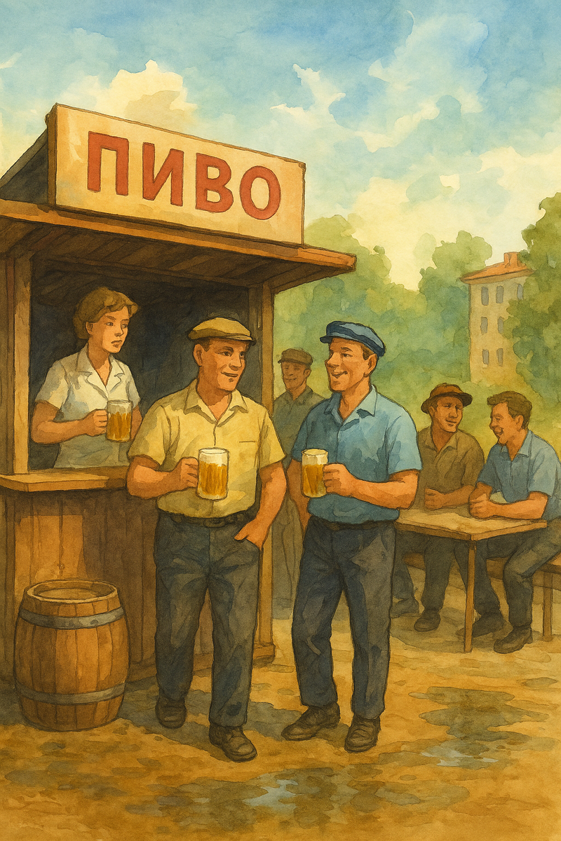 Очередь могла растянуться на час или два. Поэтому, если уж удалось достать пиво, брали не одну кружку, а несколько сразу.