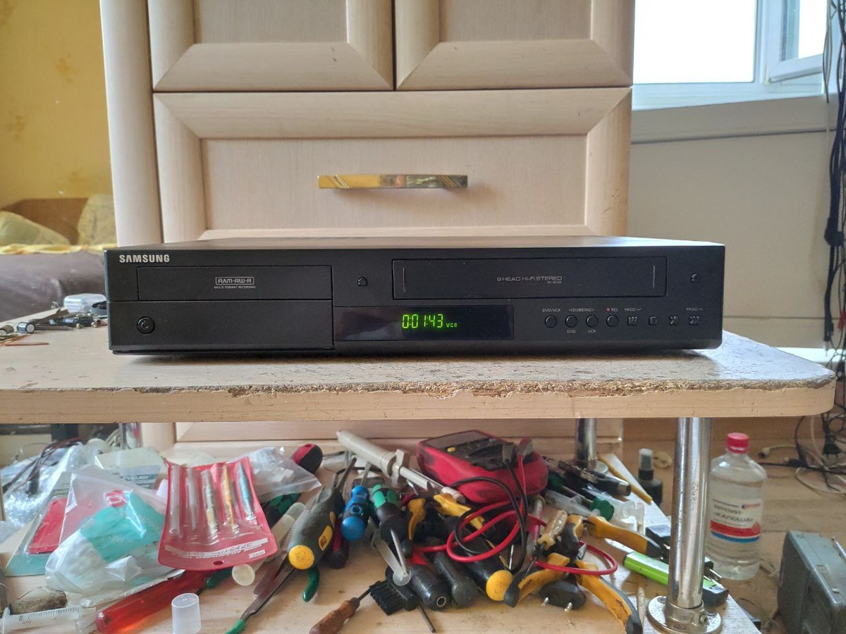 Samsung DVD-VR370.В продолжении тематики Hi-Fi звука с VHS кассет📼.Попался вот такой комбо от самсунга, да уже из эпохи заката VHS, но всё же нужно было оживить именно видачную часть и к счастью всё обошлось чисткой програмника. 😇Аппарат просто долго где то хранился, контакты окислились и логика в ступоре.😎Бонусом почистил линзу и даже резак ожил, теперь можно оцифровывать семейные архивы и переписывать на болванки, но в основном конечно будут слушать Hi-Fi c VHS. В своё время самсунг активно рекламировала подобные комбо устройства, как раз на стыке эры заката VHS и начала массовой эры DVD, но вот тема Hi-Fi звука с VHS всё же массовым явлением так и не стала, а сейчас это вообще удел энтузиастов и любителей, обычных кассетных дек, кратно больше по количеству да и фонотеки то же в основном на компакт кассетах. 😇