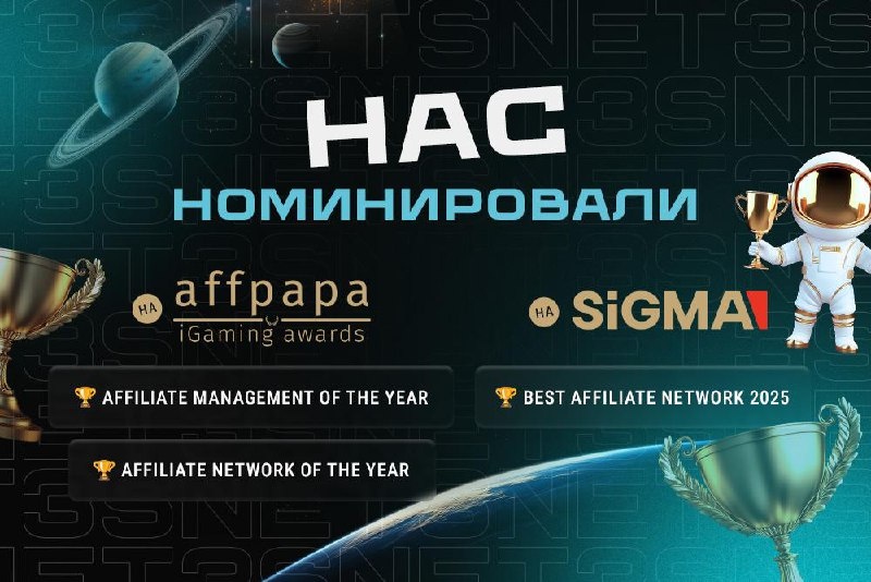 🔥 Ну что, пора забрать кубок домой? 3SNET номинирован сразу на две главные премии iGaming-индустрии: 🏆 SiGMA Awards — Best Affiliate Network 2025 🏆 AffPapa Awards — Affiliate Management of the Year и Affiliate Network of the Year Если ты хоть раз работал с нами — ты часть этой победы. Поддержи 3SNET ❤️🔥 💘 Голосовать за 3SNET на SiGMA Awards 💘 Голосовать за 3SNET на AffPapa Awards