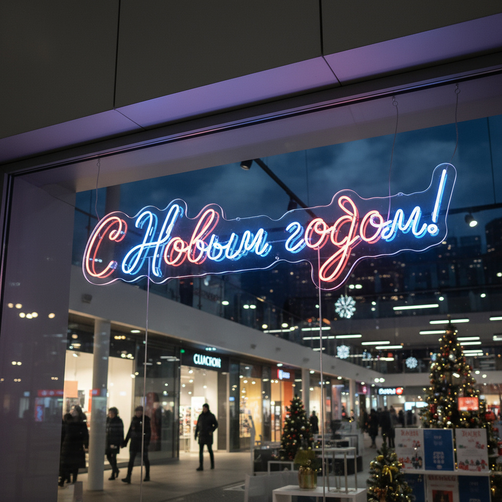Именно неоновые вывески создают то самое ощущение праздника, когда свет превращает обычное пространство в новогоднюю историю. ✨ Атмосфера с первого взгляда.